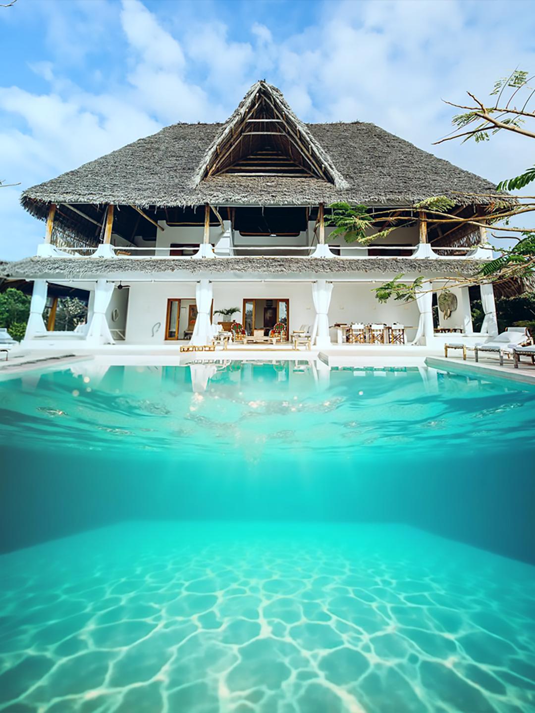 Kuća u tradicionalnom svahilijskom stilu, nalazi se na koralnom rtu s pogledom na more, plažu, prelijepe vrtove u cvatu, privatni pristup plaži. Nedavno je postavljen bazen, POGLEDAJTE KUĆNI RED Vila ima 2 nivoa i pogled na Indijski okean, privatni direktan pristup plaži, koja se prostire sa obe strane, unutar morskog parka. Uključuje 3 člana osoblja, kuvara i dnevnu uslugu u sobi i baštovana. Može da spava do 10 osoba. Lako se prilagođava i čini udobnim za ugošćavanje manjih grupa, koristeći samo spavaće sobe na spratu.