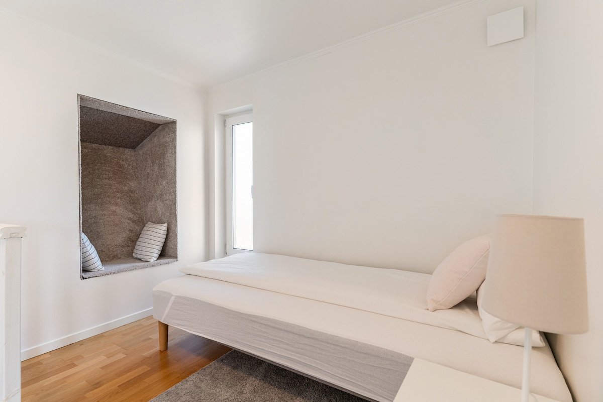 Potkrovlje u Ingridinom Airbnb-u u Malmeu. „Kreirao sam potkrovlje u kojem se moji gosti mogu osjećati opušteno i prijatno tokom borave u Malmeu. Vaš ukus se nikada ne može ponoviti, već samo mali i lijepe stvari mogu da učine da se osjećate dobro i prijatno.” Ingrid Glasovi iz zadataka. „Savršen smještaj za istraživanje Malmea i Kopenhagena. Mirijam, Njemačka. „Ovo nije Airbnb, to je dom daleko od doma. Nikad se nisam osjećala tako prijatno u inostranstvu” Grejs