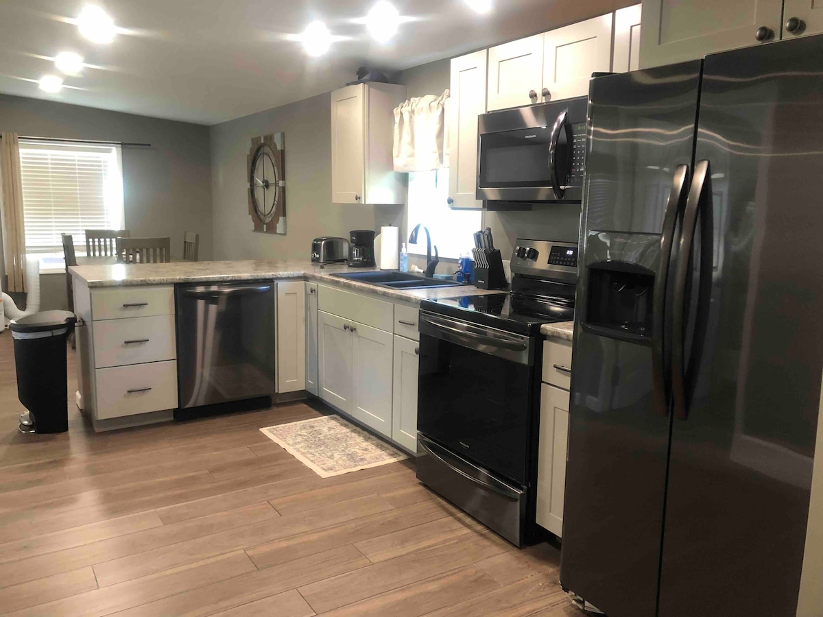 Uživajte u elegantnom iskustvu u ovom smeštaju koji se nalazi u centru grada. Odmah ispred sela Malone, u blizini prodavnica, bolnice, skijaškog centra Titus, terena za golf i svih lokalnih atrakcija! Mirno područje sa dovoljno luksuza da se osećate kao kod kuće! Potpuno novi stan sa svim novim namještajem. Uživajte u kuvanju u punoj kuhinji i uživajte u pranju veša sa mašinom za pranje i sušenje veša. Lake Placid je udaljen oko sat vremena, kao i Plattsburg i Potsdam za brze jednodnevne izlete!