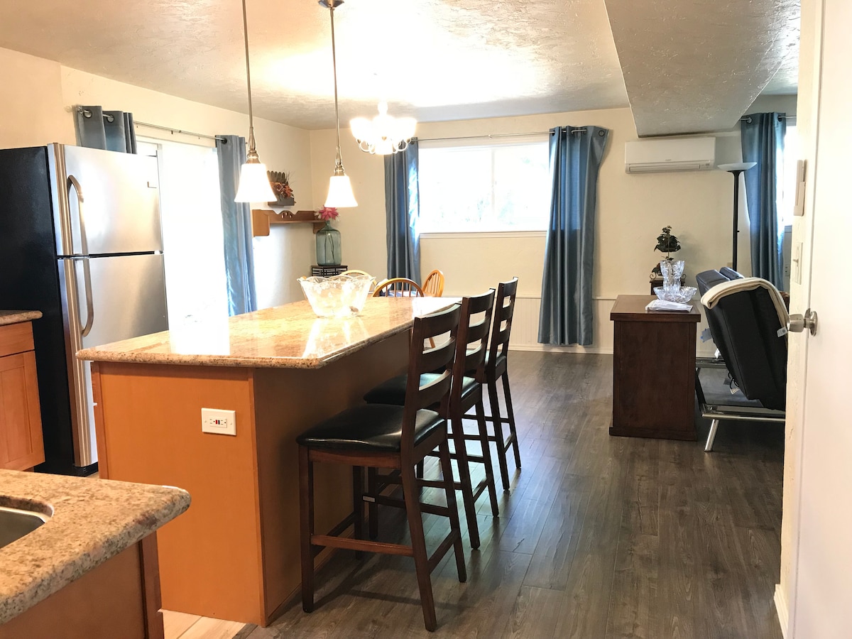 Probudite se uz svoj omiljeni topli napitak i uživajte u zadivljujućem izlasku sunca koje gmiže iznad planina na severu u ovom jednosobnom stanu. Uživajte u ukusnim jelima pripremljenim u kompletnoj kuhinji i toplom kupanju u privatnom kupatilu. Bez obzira na to da li se radi o avanturi kroz brojne pešačke staze u Vašingtonu, skijanju kod Stivena ili Snokvolmiju, pecanju duž reke Skajkomiš ili kupovini dok ne padnete u Sijetl ili u blizini prodavnica, budite sigurni da možete da se vratite kući sa lepim uspomenama i pomlađenim srcem i dušom.
