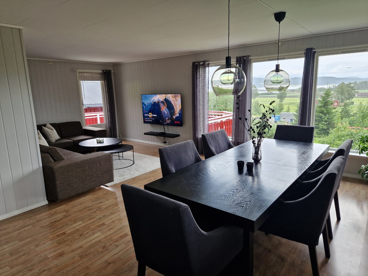 Centralni stan sa 3 spavaće sobe. 2 km od aerodroma Vćrnes Wi-Fi. Parking sopstvena kola. Pogledajte. Mirno. Samostalni dolazak i odlazak. U kompletu s posteljinom i peškirima Aparat za kafu Udaljenost od aerodroma, autobuski/tržni centar/tržni centar/ Aerodrom Trondhajm: 2 km Kanalska železnička stanica: 0,8 km Autobuska stanica. 0,7 km Tržni centar: 1,5 km Plaža 1 km. Centar Stjørdala: 4,5 km