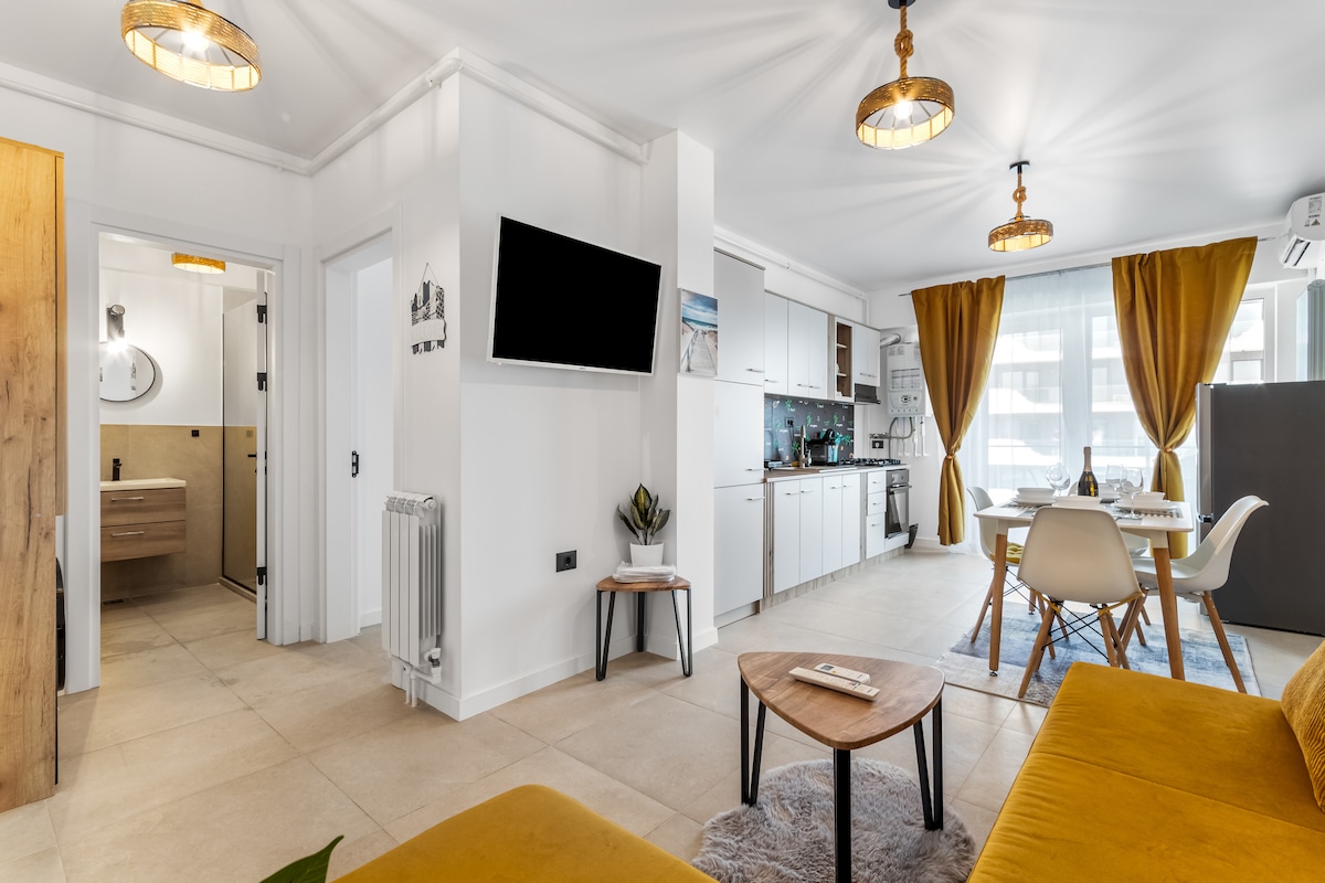 The MALI BY THE LAKE Apartment is a smart apartment that offers you state-of-the-art SMART HOME technologies, providing you with premium conditions for your comfort. Savršeno za romantični odmor ili porodični odmor. Nalazi se na sjeveru Mamaje, koji se smatra najljepšim područjem, udaljen je pješke od svih najpopularnijih lokacija kao što su POTKROVLJE, FRATELI i plaže NUBA, a istovremeno je zvučno izolovan. Sa terase stana možete da se divite najljepšem pogledu na zalazak sunca na jezeru.