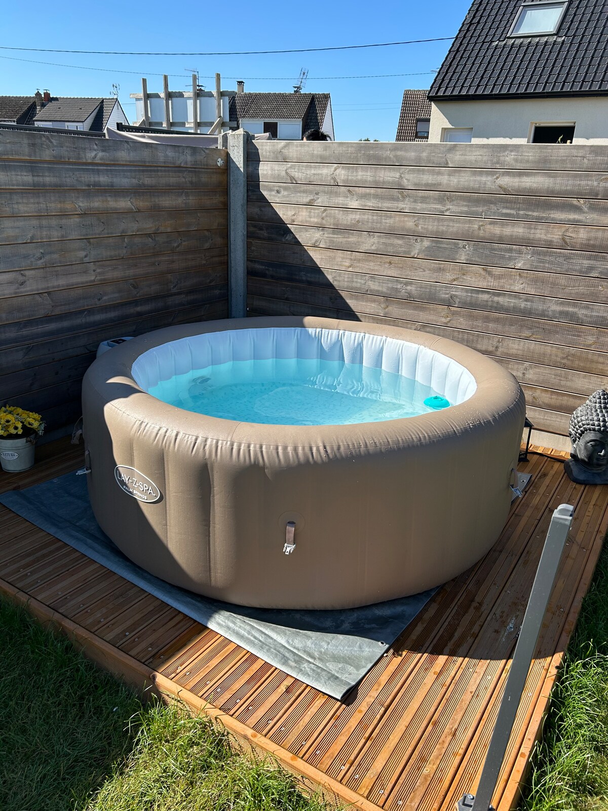 Dođite i uživajte u privatnom spa centru na jedno noćenje ili cijeli vikend! Ovaj šarmantni smještaj površine preko 40 m², potpuno nov, će vas očarati. Sastoji se od dnevnog boravka s hidromasažnom kadom i saunom, potpuno opremljene kuhinje, spavaće sobe s bračnim krevetom (širine 150–179 cm) i televizorom ravnog ekrana (Netflix, Prime Video), kupatila s tuš-kabinom i odvojenog toaleta. Čeka vas lijep spoljni prostor sa terasom.