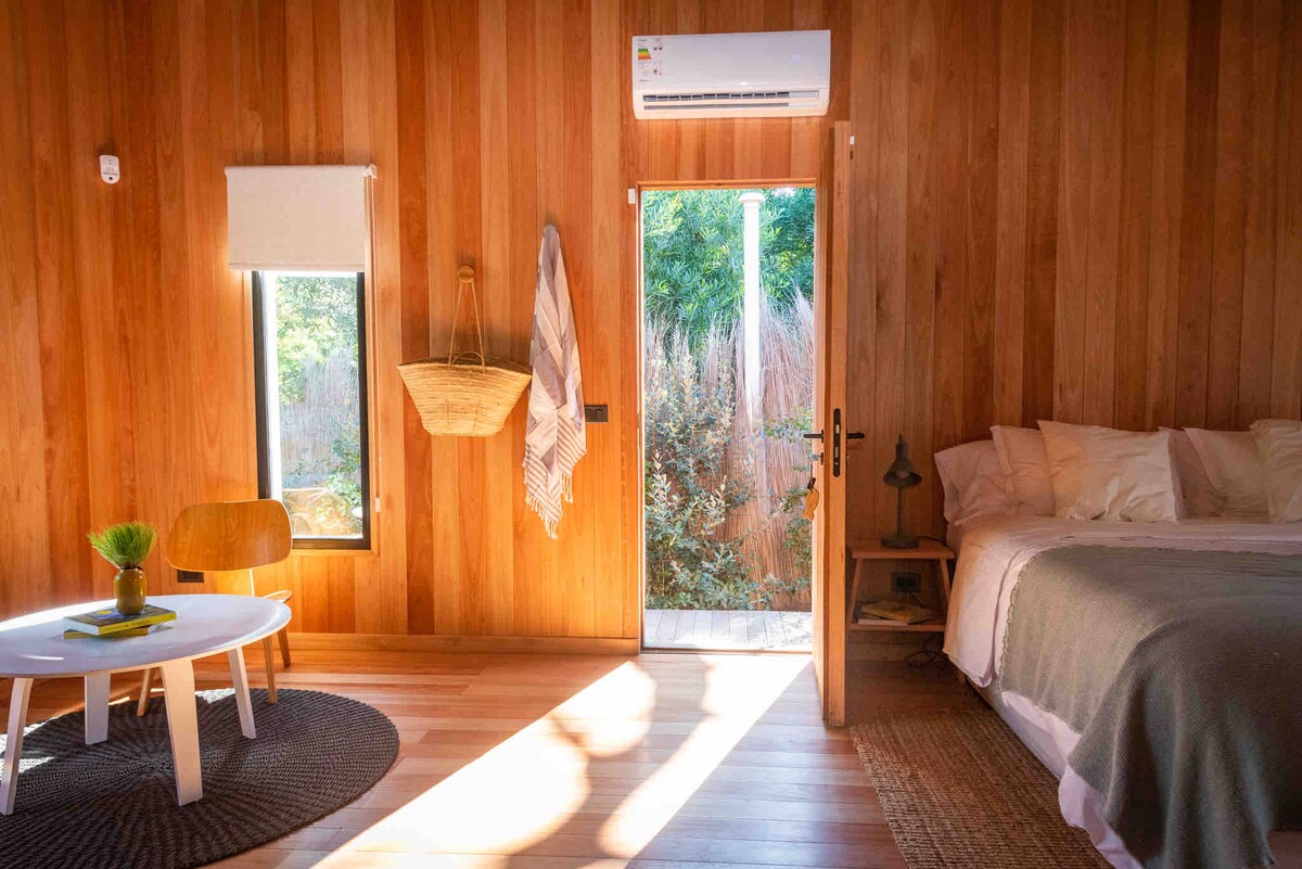 Opustite se u ovom šarmantnom drvenom bungalovu sa tradicionalnim slamnatim krovom, koji se nalazi samo nekoliko blokova od sela Manantiales i zadivljujuće plaže Bikini. Dizajnirana za parove koji traže mir, privatnost i prirodne ljepote bez žrtvovanja udobnosti, brvnara je u potpunosti opremljena za uživanje tokom cijele godine. Zahvaljujući odličnoj izolaciji i termalnom dizajnu, ljeti ostaje svjež, a topao u hladnijim mjesecima.
