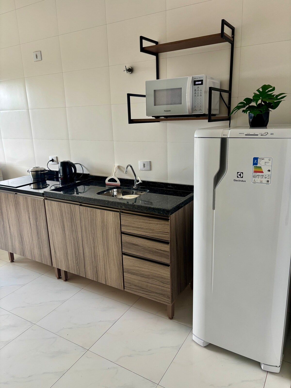 26 m² Studio cijeni osnovnu opremu sa bračnim krevetom, klima-uređajem, ventilatorom, smart, Wi-Fi, fritezom, mikrotalasnom rernom, rernom, šporetom, frižiderom, mašinom za pranje veša, aparatom za sendviče, šporetom za pirinač, ekspres šporetom, peglom, filterom od gline i parking mjestom. Nalazimo se u blizini supermarketa Assai i prodavnice catuai u mirnom susjedstvu. Objekat sa stepenicama za pristup gornjem dijelu kuće , sa potpunom privatnošću . Porodična atmosfera