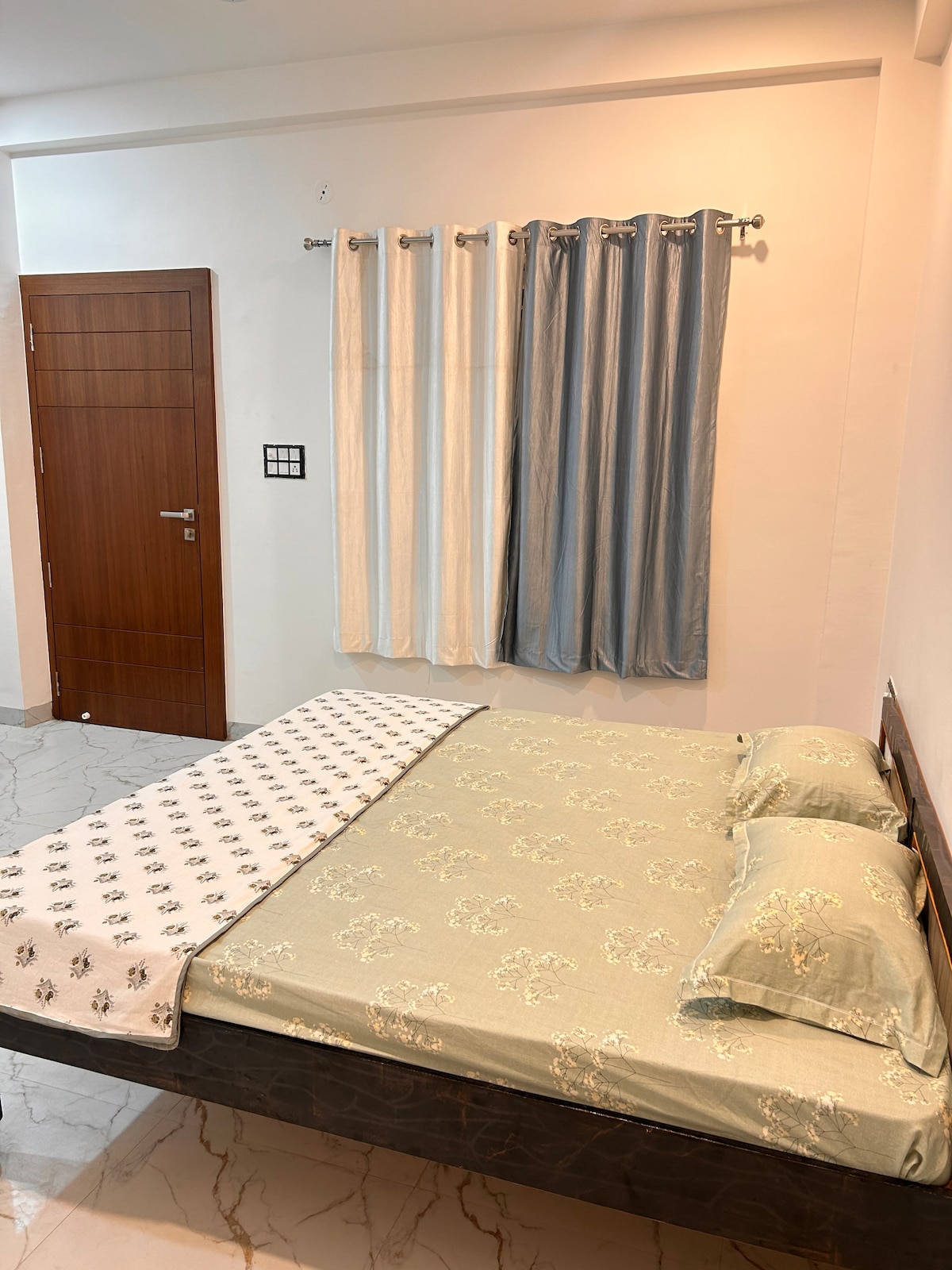 Samostalna prijava, studio u stilu hotelskog apartmana u Vijay Nagar, Indore, savršen za parove koji borave na odmoru, žene koje putuju same i profesionalce koji rade. Ima bračni krevet, udoban dnevni boravak, TV, sklopivi radni sto, Wi-Fi i balkon. Pažljivo uređeni enterijeri i opremljena kuhinja, prostor vam pruža udobnost hotela i slobodu doma. 10 minuta do Farzi Cafe & Piano Project 10 minuta do tržnog centra C21 25 minuta do aerodroma i stanice Idealno za kratke/duge i romantične boravke u Indoreu.