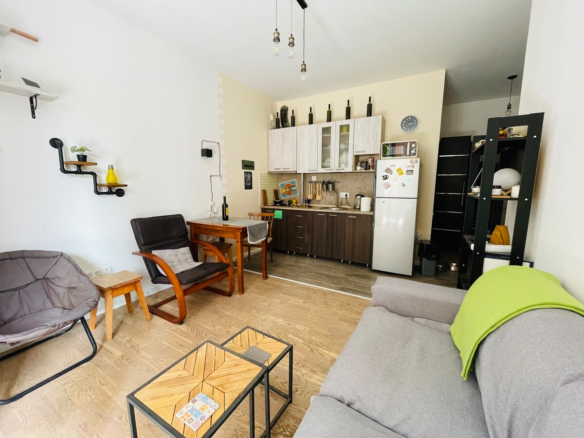 INDUSTRIAL Studio in old soviet building designed by "VIRSTAK", brings unique atmosphere with spectacular day and night CITY VIEW enjoyable from the BATHTUB. -100% HANDMADE. - Not a RANDOM cozy/ functional apartment, Studios amenities consists of old vintage and industrial furniture, for some people might feel uncomfortable out coming from a personal taste. Artistic vibe making you feel like in movies. - WINERY - 9 SORTS of wine - Movie Projector Airport pickup Suzuki Swift 80 Gel