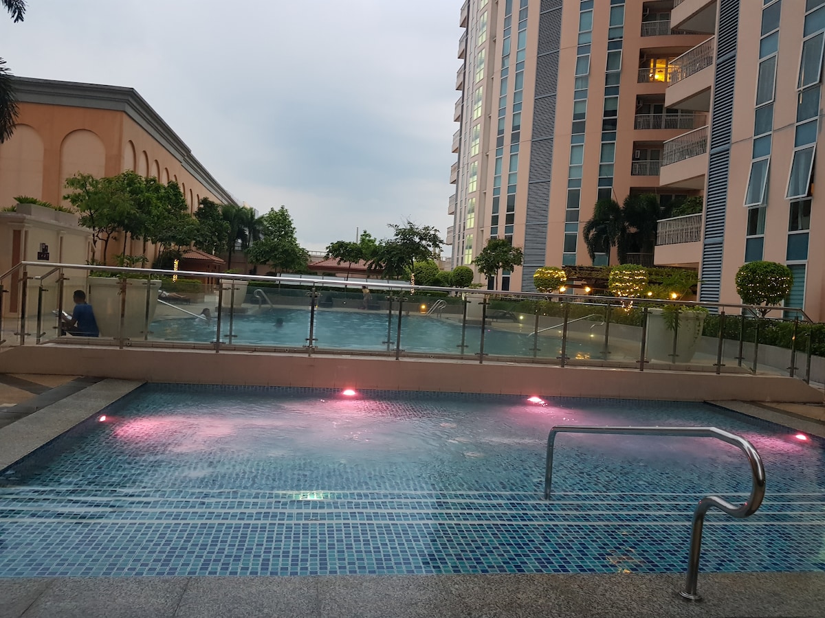 Otkrijte skrivenu oazu u užurbanom srcu Makatija. Sa našim jedinstvenim konceptom spajajući najbolje od oba svijeta - tržnih centara i sadržaja u stilu odmarališta - donosimo vam neusporedivo iskustvo boravka kao nijedno drugo. 📍Lokacija: Air Residences, Makati 🖥️ Besplatan WI-FI i Netflix 🍳Potpuno opremljena kuhinja sa Ref i mikrotalasnom rernom Maksimalan broj️ gostiju: 8 ¥ ❌ kućni ljubimci i posjetioci nijesu dozvoljeni Korišćenje 🔆 bazena 🏫: Air Mall & Rise Mall se nalazi na GF-u. Greenbelt, Landmark i Glorietta su takođe u blizini.