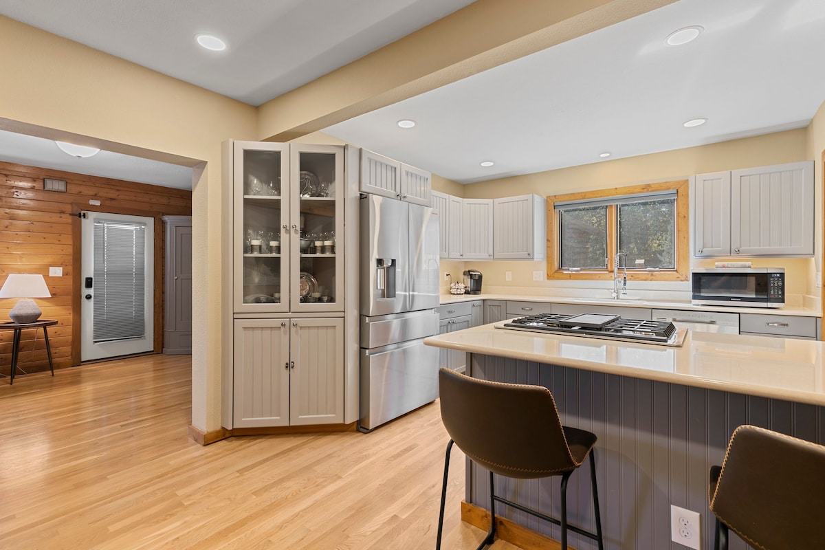 Uživajte u predivnom pogledu na zalazak sunca iza vrha Pajks kroz prozore od poda do plafona! Pijuckajte jutarnju kafu na privatnom terasu dok porodica jelena luta pored. Uđite u Vrt bogova, a zatim se opustite u hidromasažnoj kadi pod zvijezdama. Pripremite ukusan obrok koristeći sve što vam je već obezbijeđeno; posuđe, ulja i začine – i uživajte u njemu sa pogledom na planine u pozadini Otkrijte svoje idealno utočište u Kolorado Springsu u mojoj s ljubavlju renoviranoj istorijskoj kući za goste!