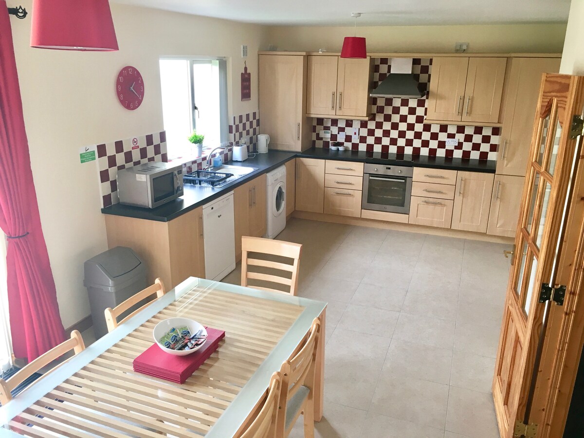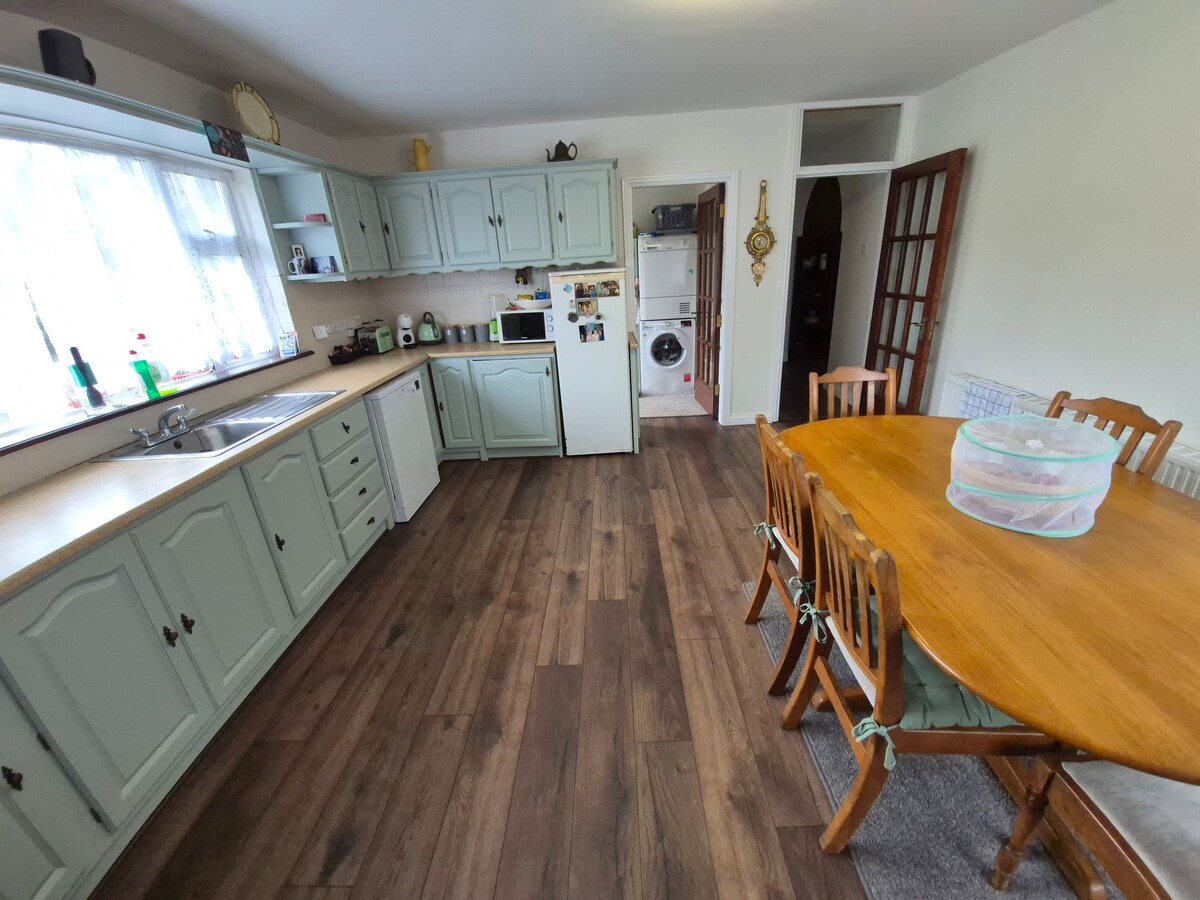 BESPLATAN parking na ulici!!! Kuća je u centru Letterkenny tako da TAKSIJI nisu potrebni. U veoma mirnoj četvrti, ali samo 2 minuta od glavne ulice odmah pored svih pabova i tržnih centara. Sa super brzim Vi-Fi. Svi novi jastuci i posteljina. To je veoma ČISTO i toplo mesto za boravak. Kreveti su veoma udobni. Postoje 2 bračna kreveta 1 je u apartmanu. I 1 krevet za jednu osobu koji će koristiti glavno kupatilo. Mogu lako da spavam 5. Oba kupatila imaju tuševe. Slobodno me pitajte bilo kakva pitanja
