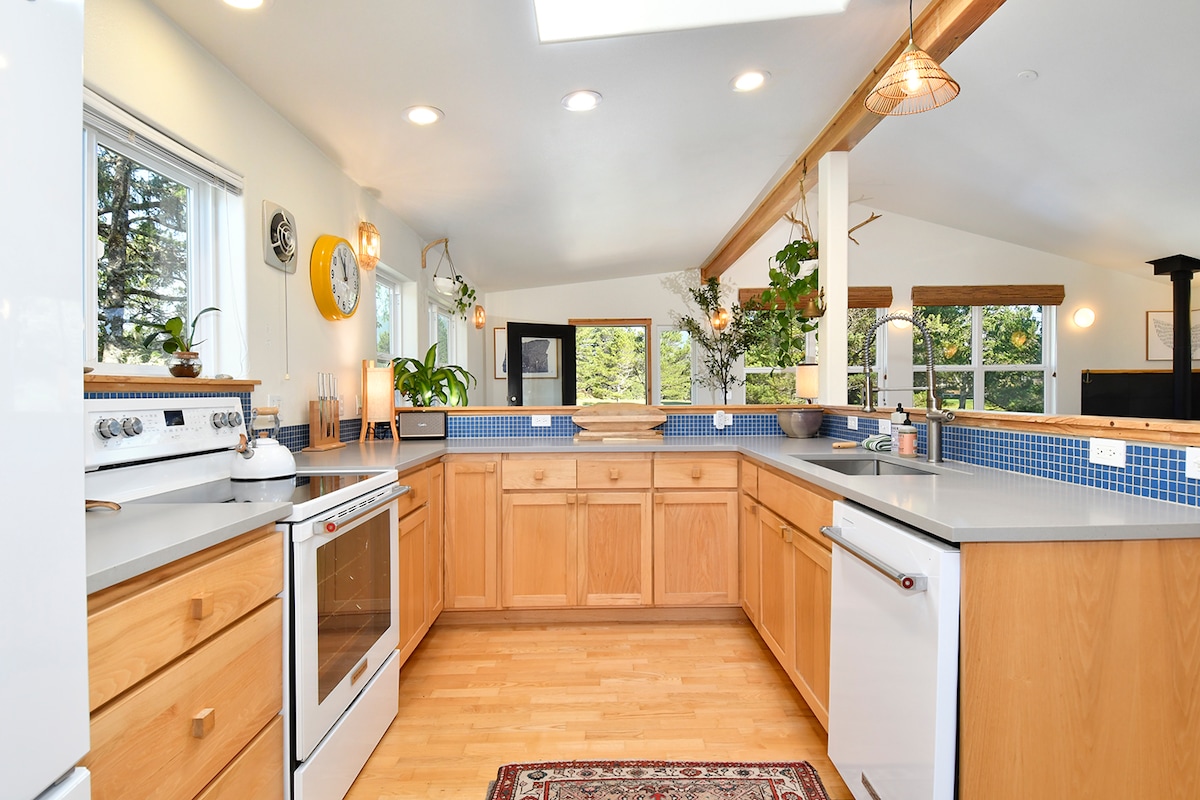 Naša brvnara u surferskom stilu može biti mala, ali veliki prozori s pogledom na zaliv, okean i obalne šume omogućavaju da mnogo svjetla poplavi prostor. Samo kratka šetnja do plaže, prodavnica i u blizini nekih od najboljih surferskih pauza u sjevernom Oregonu. Uživajte u maglovitim jutrima u hidromasažnoj kadi, avanturi tokom dana i provedite zalaske sunca pored ognjišta ili na našoj velikoj terasi. Naše prednje dvorište takođe ima stazu za divljač, zato ponesite malo jabuka - velike su šanse da ćete vidjeti jelena ili dva : ) @surflineloft STVR#851-24-000045