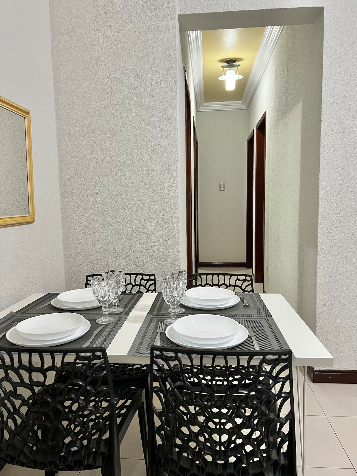 Stan u ograđenom kondominijumu, 3 minute od tržnog parka, 1,9 km od stadiona Mangueirão, brz pristup međunarodnom aerodromu, savršeno mjesto za one koji traže udobnost, bezbjednost i praktičnost. Grad Belem sam ili sa porodicom i prijateljima prostor je bio udobno pripremljen da vam pruži prijatne dane u Belemu. Dnevni boravak je poziv na odmor, sa sofom na razvlačenje, smarTV-om i Wi-Fi mrežom. Kuhinja je opremljena priborom i uređajima potrebnim za pripremu omiljenih jela.