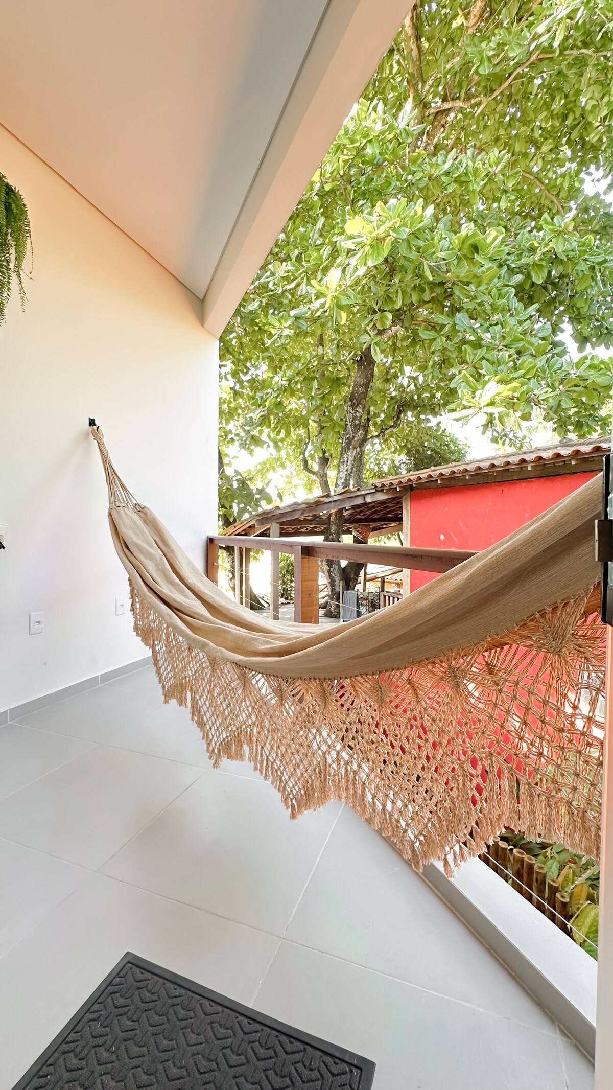 To je miran i elegantan prostor 200 metara od plaže, usred autohtone vegetacije! We are LGBTQIAP+ friendly and being away from the core of the community we enjoy quiet and tranquility but five minutes away from the hustle! Apartman s pogledom na drveće je garancija odmora. Kuhinja sa plafonom piaçava je prelijepa i pripremljena je sa potrebnim. Kupatilo ima privatne prostore koji garantuju vašu intimu. Opustite se u ovom smještaju! Svideće vam se!
