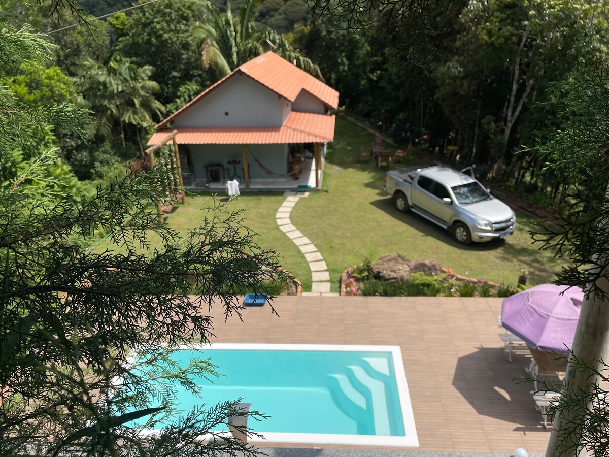 Sítio Reichart djeluje kao pravo utočište u prirodi — savršeno za one koji cijene mir u okruženju prikladnom za porodice. Šarmantna drvena planinska kuća ima udoban dnevni boravak/trpezariju sa kupatilom i spavaću sobu na spratu. Samo 21 minut od Marešal Floriano i 36 minuta od Domingos Martins. Smješten unutar tropske šume, objekat ima prostrani travnjak, ribnjak, prirodni bazen, sto za bilijar, prostor za roštilj i druge sadržaje koji stvaraju savršeno okruženje za opuštajuće dane u prirodi.