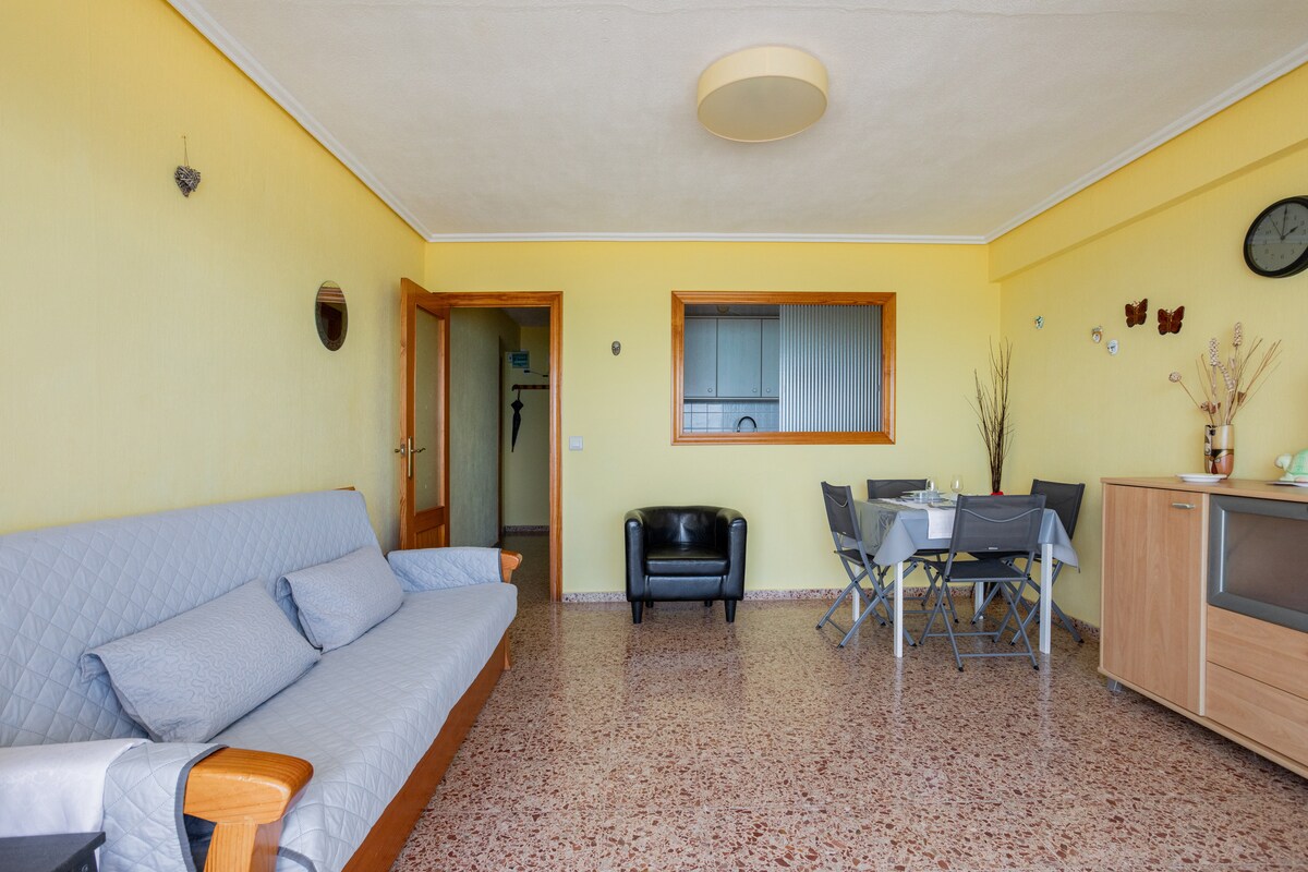 Otkrijte savršen odmor uz more! Ovaj svijetli, prostrani stan na 9. spratu ima nenadmašnu lokaciju na samoj plaži, s kojeg se pruža panoramski pogled na Mediteran i prirodne ljepote prirodnog parka La Albufera. Potpuno opremljena kuhinja (mašina za sudove), udoban dnevni boravak sa terasom sa pogledom na more, jedna spavaća soba sa bračnim krevetom i dvije dvokrevetne sobe i kupatilo, idealna je za porodice. Dva klima-uređaja, Wi-Fi, pametni TV i parking. Prikladno za kućne ljubimce. Pravo utočište za opuštanje i prirodu!