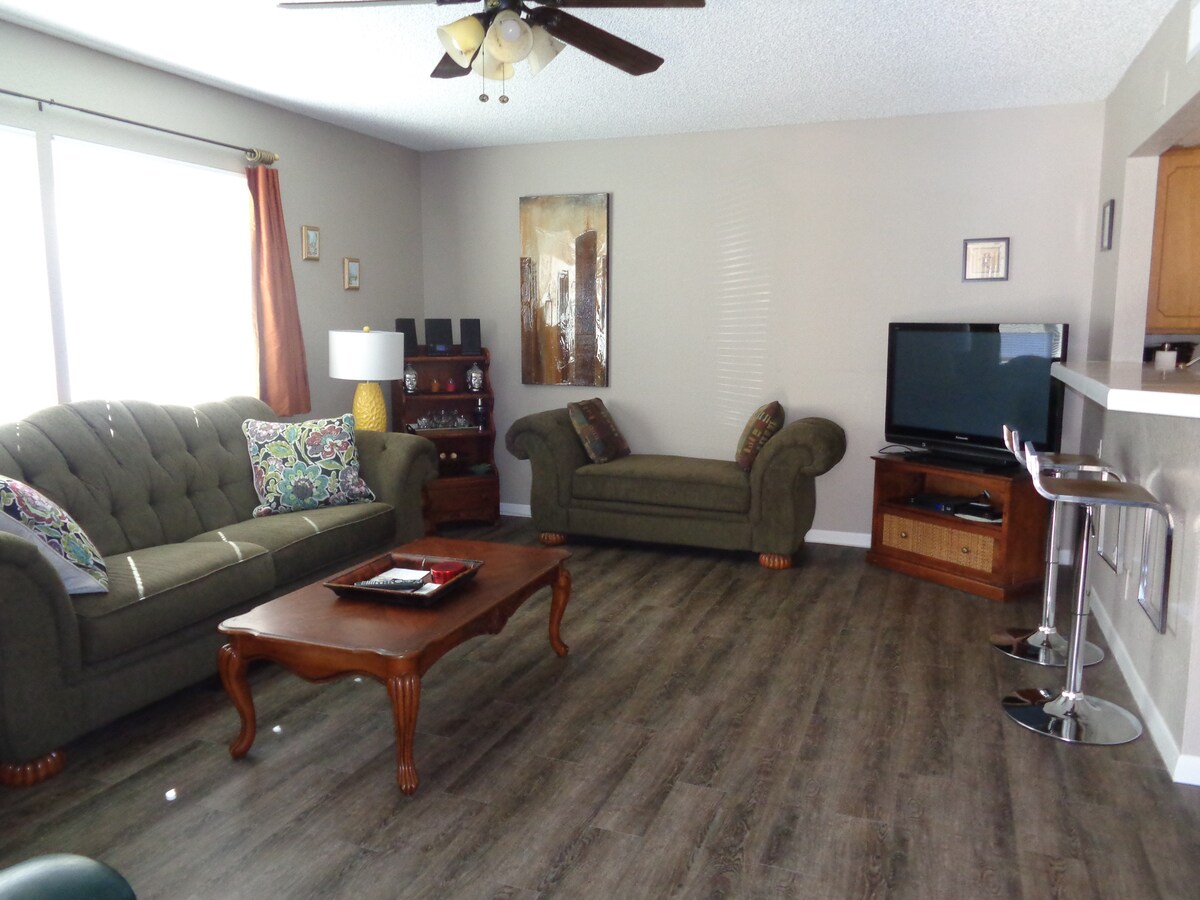 Udoban i lepo uređen dom sa 5 spavaćih soba (1 bračni krevet, 3 francuska kreveta, 2 kreveta za jednu osobu i kauč na razvlačenje). Trpezarijski sto ima mjesta za mnogo gostiju i pretvara se u lijep bilijarski sto u punoj veličini. Zadnje dvorište je mjesto gdje se nalazi! Opustite se u đakuziju ili testirajte svoje golferske vještine na zelenom terenu. Lijep roštilj i ognjište za opuštanje u srcu Skotsdejla! Vlasnik je postavio sve nove plafonske ventilatore, novi frižider sa ledom i vodom, nove televizore u svim spavaćim sobama, NOVE čaršafe, jastuke, jorgane i peškire!