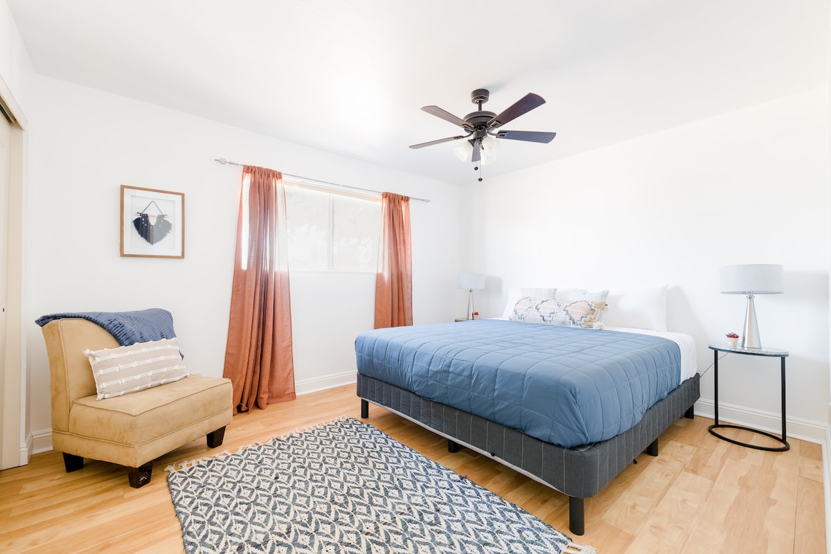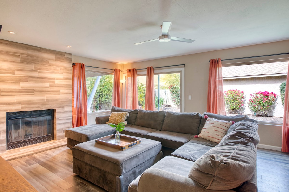 Zabavite se sa cijelom porodicom u ovom elegantnom smještaju. Cijela kuća i garaža u Feniksu odmah pored autoputa, 11 milja od zabavnog centra Vestgejt, 11 milja od centra Feniksa i 21 milju od Skotsdejla. Ima 4 spavaće sobe sa bračnim krevetima i bračnim krevetom u glavnoj sobi + prostor za sjedenje na otvorenom i salon sa ognjištem i rešetkom! Ovaj dom je nedavno ažuriran HD televizorima, ogledalima pune veličine i mašinom za spavanje sa noćnim svjetlom u sve četiri sobe.