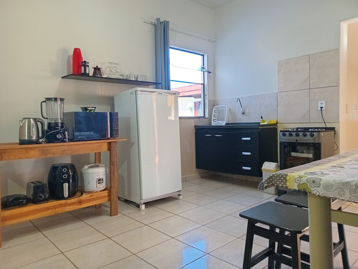 🏡 Situado em bairro nobre, acesso fácil aos principais pontos da cidade! 2 camas solteiro super confortáveis, suite com banheiro, ar-condicionado, Wi-Fi rápido, Smart TV e frigobar. Espaço recém reformado tudo novo! 🚗 Garagem exclusiva grátis! Entrada independente lateral: total privacidade e segurança. 🐾 Pet friendly (taxa extra). ⚠️ Acesso escada, balcão para refeições com itens básicos. Ambiente familiar muito acolhedor! 🛏️Venha se hospedar conosco e relaxar neste refúgio especial!