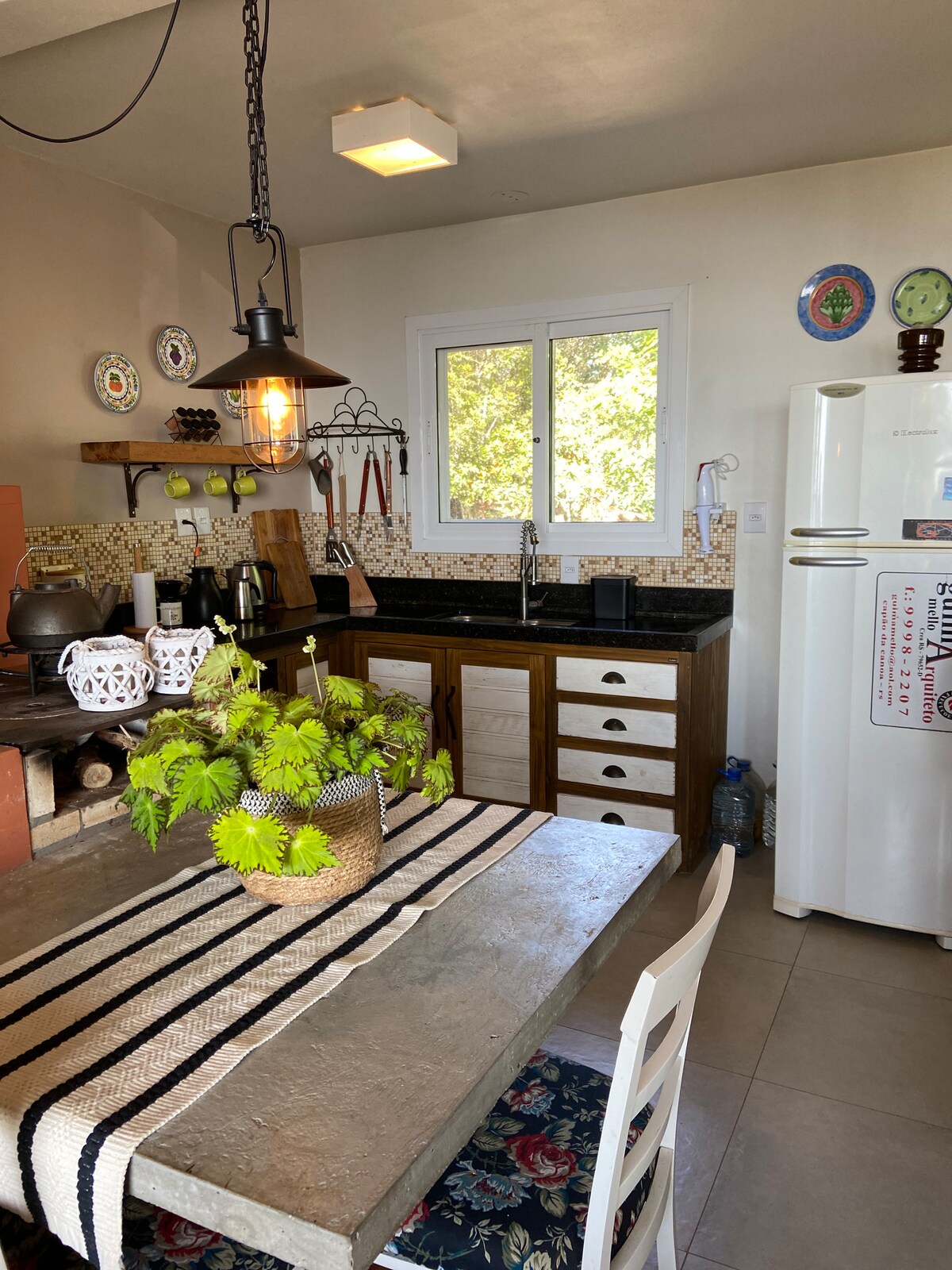 Desfrute de dias tranquilos em um chalé simples, de madeira rústica, ideal para quem busca sossego e contato com a natureza. Conta com piscina, churrasqueira, lareira externa e fogo de chão. No interior, há calefator e fogão a lenha. O mezanino possui duas camas de casal e ar-condicionado, com acesso por escada, podendo não ser ideal para idosos, crianças ou pessoas com mobilidade reduzida. 20 min da praia de Atlântida Sul e 1h de Porto Alegre. Ambiente aconchegante e sem luxo.