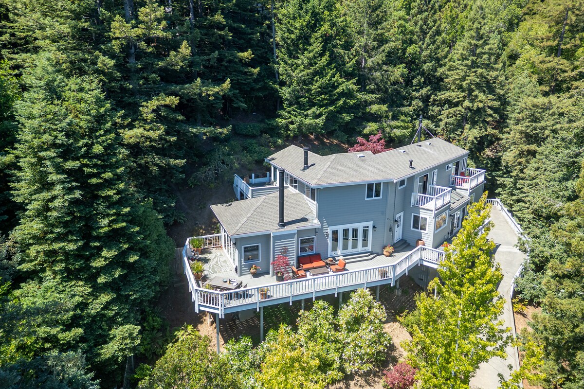 Tražite zdravu dozu mira i avanture na kućnom pragu? Preko 100 koraka od puta ispod, ova „kuća na drvetu” smještena je iznad svega i vodoravno orijentisana na strmoj parceli između dva potoka. Staklena fasada stvara dramatičan pogled na sekvoje, Mt. Tam i preko centra Mil Velija do grebena Blithedale. Usidrena u granitu, kuća se nalazi na ručno izrađenim kamenim zidovima od stijena koje su ubrane na imanju tokom izgradnje šezdesetih godina prošlog vijeka. Zaista jedinstven boravak.