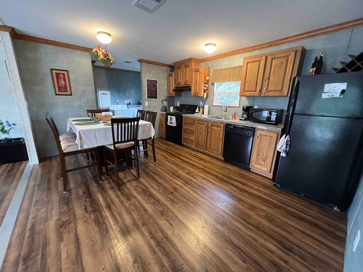 Pobjegnite na našu mirnu farmu konja od 50 hektara i uživajte u mirnom odmoru u prirodi sa prelijepim pogledom. Uživajte u svim udobnostima doma: Wi-Fi, klima-uređaj, grijanje, TV, potpuno opremljenu kuhinju i ograđeni trijem. Prošetajte imanjem, pozdravite naše ljubazne pse i konje i uživajte u ljepoti koja vas okružuje. Na osami od gužve i vreve, ali samo 10 minuta do grada. U blizini Devil's Dena, UF-a, Sidar Lejksa, Univerziteta Či, HITOVA i manje od 30 minuta do Svjetskog konjičkog centra - savršenog za avanturu i opuštanje!