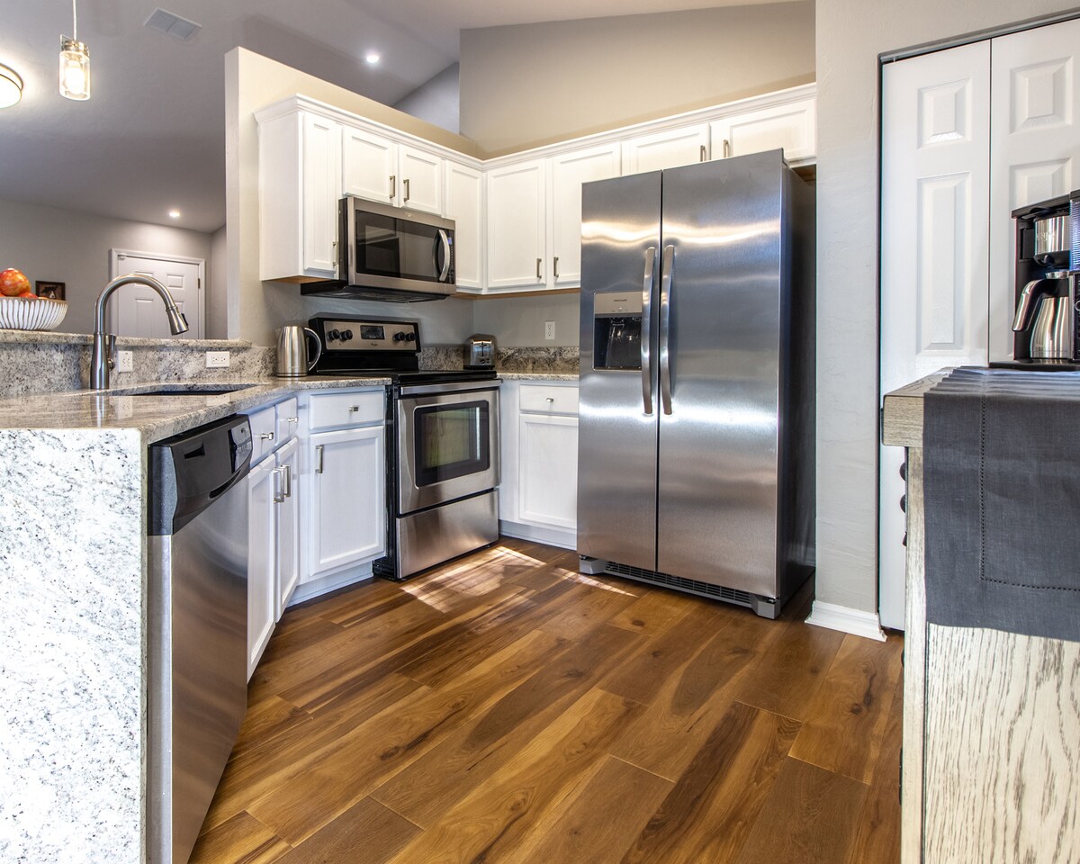 Potpuno renoviran, vrhunski konjički bijeg samo 7 minuta do Svjetskog konjičkog centra i 13 minuta do HITOVA. Skrenite levo od okoline i stići ćete u WEC za 4 milje. Ova 3 spavaće sobe i 2 kupatila imaju svu udobnost i sadržaje koje biste očekivali da pronađete u luksuznom domu, uključujući vrhunske brendirane dušeke, vrhunsku posteljinu, dizajnerska kupatila i najkvalitetniji nameštaj. Pametni dom opremljen mrežnim bežičnim internetom, kamerama sa prstenom, termostatom za gnezdo i ulaskom na vrata sa šifrom za Wi-Fi.