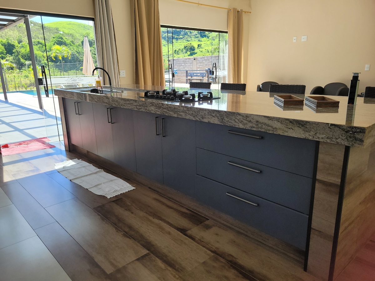 Opustite se u ovom mirnom i elegantnom prostoru. Naša koliba je gostinjska kuća sa drvenom konstrukcijom, prilično lepa i udobna. Smješten u području očuvanja životne sredine, u ograđenoj zajednici, sa konsijeržom koji radi non-stop, jezerima za ribolov i obiljem prirode! Udaljeni smo oko 20 km od Juiz de Fora. Za one koji traže mir u prirodi. Od 2024. godine, bazen i prostor za odmor će se dijeliti sa novom planinskom kućom i svim gostima glavne kuće!