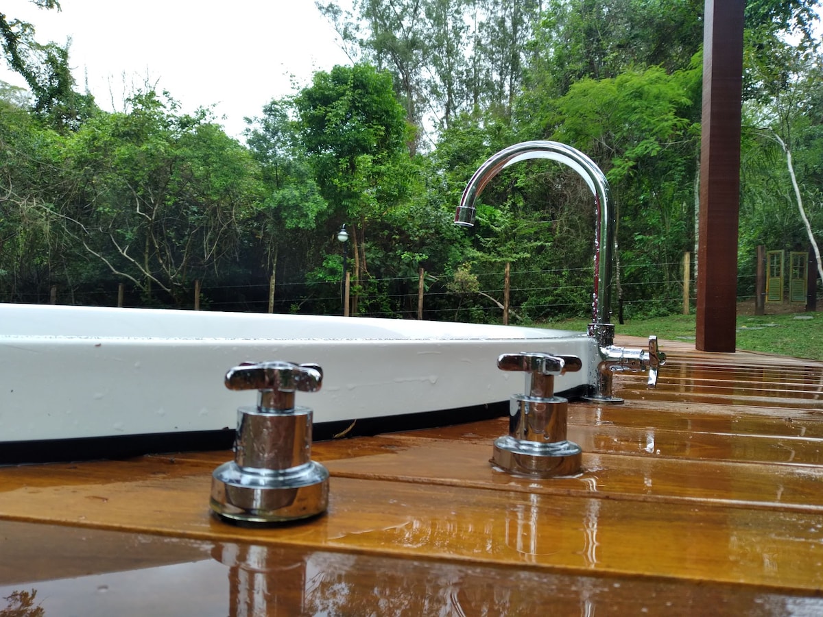 Chalé do Campo je mirno mesto okruženo prirodom, idealno za vašu porodicu i prijatelje. Uživajte u ovom prostranom i udobnom smještaju. Postoje dvije spavaće sobe i dva kupatila, od kojih je jedno apartman na mezaninu, sa velikom terasom ispred njega koja takođe uključuje đakuzi sa 8 sjedišta sa hromoterapijom.