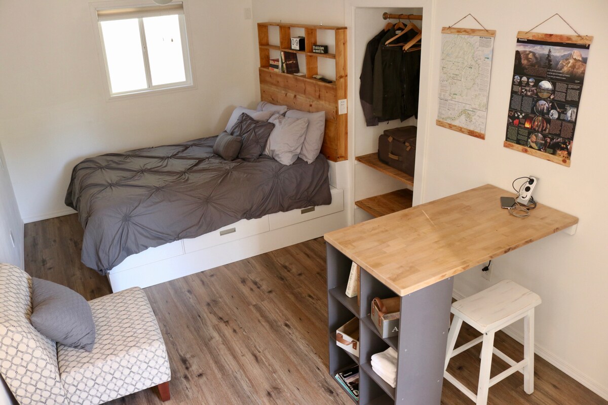 SAVRŠEN dom daleko od doma blizu Josemitija! Da li ste ikada željeli da ostanete na vrhu planine sa nevjerovatnim izlascima sunca svakog jutra i zalascima sunca koji oduzimaju dah svake večeri? Ne tražite dalje! The Mountain Top Oasis je mirno privatno utočište od 9 hektara smješteno u hrastovima u blizini Josemitija sa nevjerovatnim pogledom na zvijezde! Studio apartman ima malu čajnu kuhinju (odličnu za ostatke hrane) i izuzetno udoban novi Tempurpedic dušek veličine bračnog kreveta; osećaj je kao da spavate na oblaku.