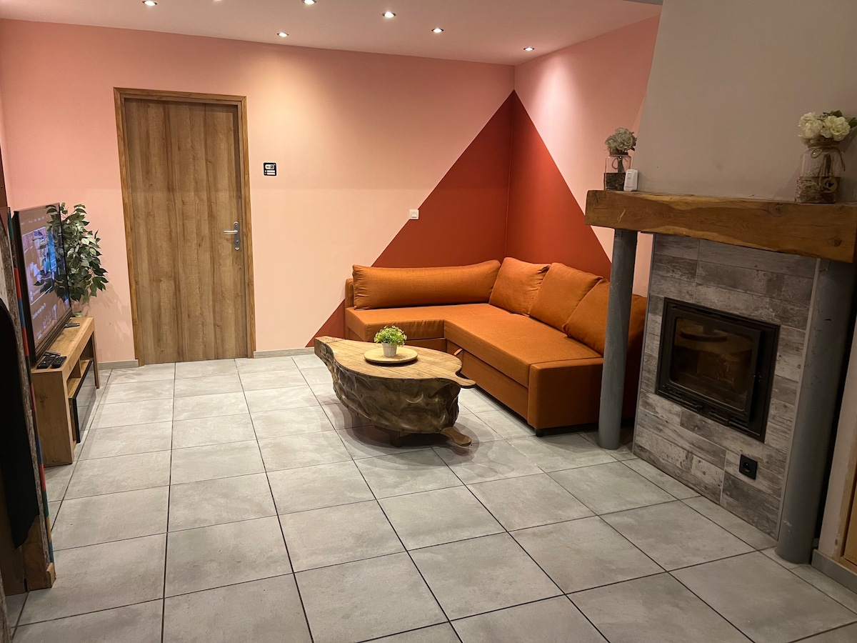 Otkrijte ovaj šarmantni stan od 35 m², gdje je đakuzi nesumnjivo centralni dio vašeg boravka. Uključuje spavaću sobu opremljenu bračnim krevetom (180 x 200) sa vrhunskom posteljinom, kao i udoban dnevni boravak sa TV-om (Netflix, Prime Video, YouTube, Canal+). Uživajte u potpuno opremljenoj kuhinji, modernom tušu i klima-uređaju za optimalnu udobnost. Rezervišite svoj odmor i uživajte u jedinstvenom velnes doživljaju!