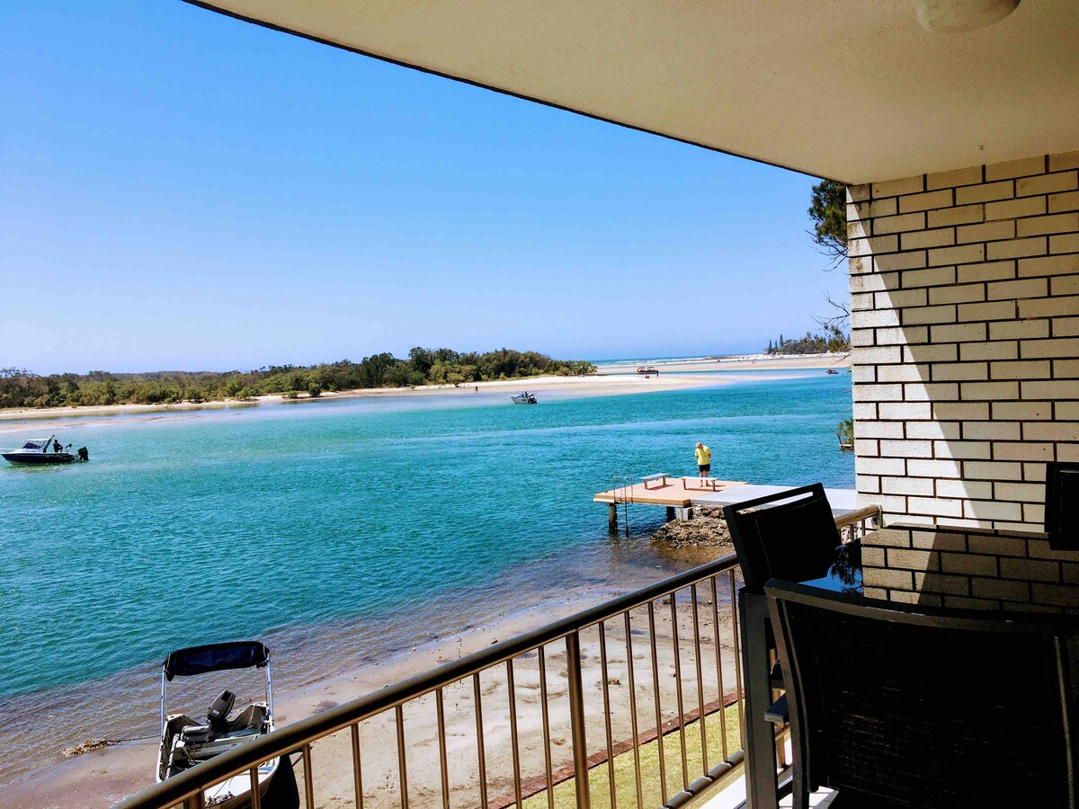 Prostrana prizemna jedinica u malom mirnom stambenom kompleksu na Piknik Point Esplanade. Uživajte u pogledu na vodu iz velike prostrane kuhinje, salona i spavaćih soba , savršenih za odmor. Uživajte u plivanju sa plažom ispred ili u složenom bazenu . Neograničen Wi-Fi /netflix . Pristup veslima u usponu. Podeljeni sistem grejanja/hlađenja u glavnim brm i dnevnim sobama . Daljinska garaža sa direktnim pristupom jedinici. Obilje restorana/opcija za kupovinu, sve u kratkoj ravnoj šetnji.