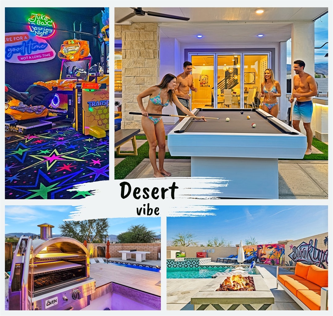 ✨Čeka vas bekstvo u pustinju, gde se boho šarm susreće sa modernim luksuzom! ✨ » Samo nekoliko minuta od Nacionalnog parka Džošua Tri » Uživajte u bazenu sa sistemom grejanja, đakuziju i otvorenom ognjištu » Opuštanje u ležaljkama, dvorište sa ogradom i predivan pogled » Uživajte u privatnom pozorištu, arkadama i igraonici. » Istražite otvoreni plan sa dizajnom inspirisanim pustinjom 📩 Vaša pustinjska priča počinje ovdje, javite nam se da saznate više!