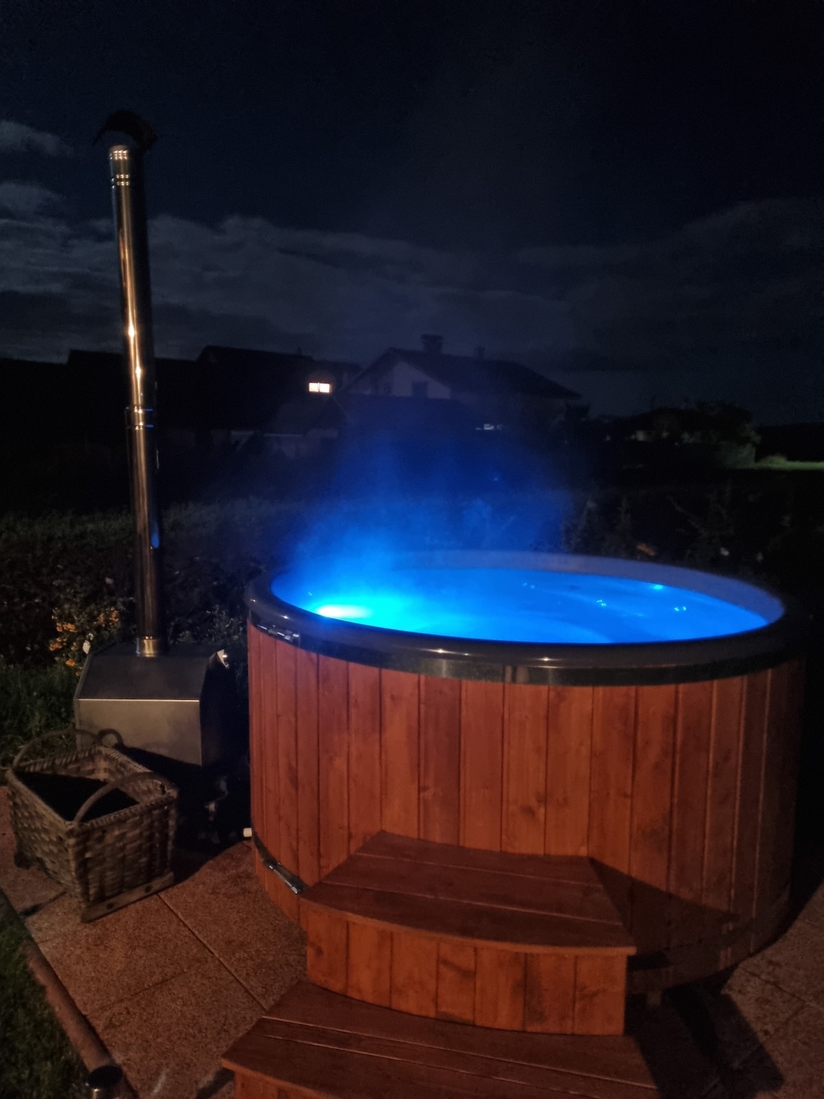 Kuća sa sopstvenim parkingom, 2 spavaće sobe, 2 kupatila (1 tuš kabina, 1 kada), potpuno opremljena kuhinja (sudopera, mašina za pranje veša), kamin (drva za kamin se dodatno naplaćuju 12 evra/veče), zajednička bašta, mirno okruženje u blizini prirode. Opustite se u ovom smeštaju sa celom porodicom. Kuća sa privatnim parkingom, 2 spavaće sobe, 2 kupatila (1 tuš, 1 kada), potpuno opremljena kuhinja (mašina za pranje sudova, mašina za pranje veša), kamin (drva za kamin se dodatno naplaćuju), zajednička bašta, mirno okruženje blizu prirode.