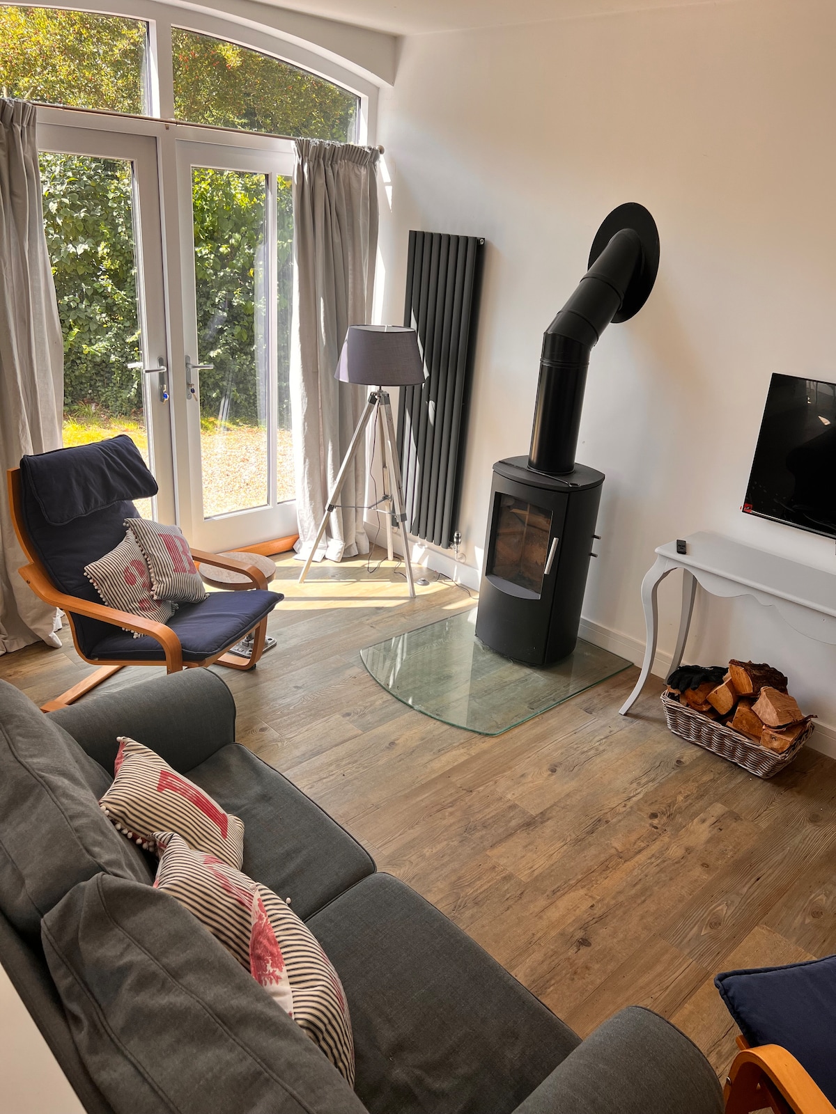 U blizini srca predivnog Vudbridža dok se osjećate duboko u prirodi. Potpuno namješten ambar na gornjem spratu. Dvije velike spavaće sobe sa zasebnom kupaonicom, laganim i prostranim dnevnim boravkom/kuhinjom/trpezarijom otvorenog tlocrta sa značajnim balkonom sa pogledom na šumu. Smješten u bašti od 4,5 hektara sa parkingom izvan ulice. Bašta ima pogled na rijeku Deben i pješačku stazu koja vodi do zida rijeke. Centar grada/stanica je udaljena 7 minuta hoda, što je idealna baza za istraživanje Safolka. Više informacija potražite na više od 150 recenzija!