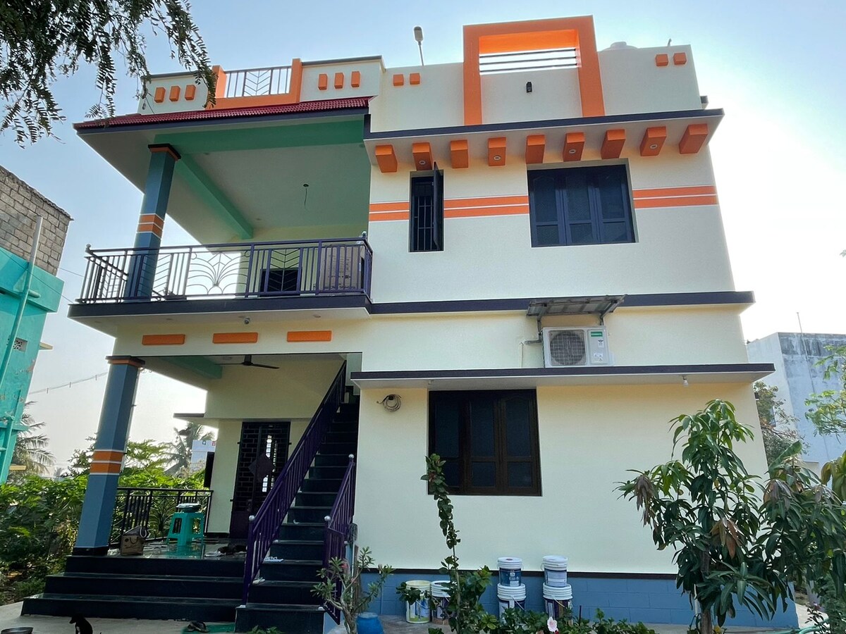Dobro došli u VAMA Green Residence – vaše mirno utočište! Naš udobni 2BHK se nalazi na prvom spratu, samo 100 metara od Nacionalnog autoputa. Imajte na umu da pristup zahtijeva penjanje stepenicama. Probudite se uz zvukove prirode, uživajte u bujnom zelenom pogledu s balkona i pobjegnite od gradskog života. Praktična lokacija: 5 km od stajališta autobusa, 6 km od željezničke stanice i 20 km od plaže Kanjakumari. Rezervišite sada za miran i nezaboravan boravak!