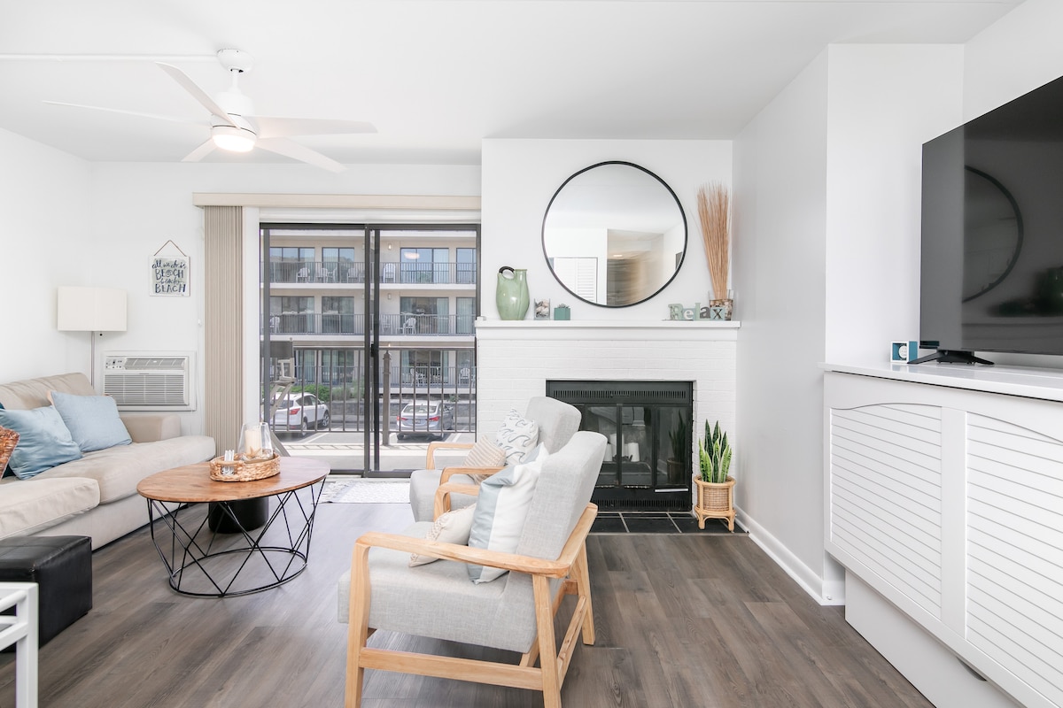 Koraci do plaže! Potpuno renoviran, svetao, moderan, čist stan sa pogledom na okean na balkonu. Mirna lokacija u severnom Oušn Sitiju sa pešačkom udaljenošću do restorana, autobusa, 7-11, terena za mini golf, bioskop, parkova itd. Potpuno novi uređaji i nameštaj. Besplatan Wi-Fi, bračni krevet, televizor od 60inča i 40inča. Izvucite kauč na razvlačenje, potpuno novo kupatilo. Mašina za pranje i sušenje u jedinici. Stanica za kafu Keurig, stanica za punjenje iPhone-a. Privatni balkon. Besplatan parking.
