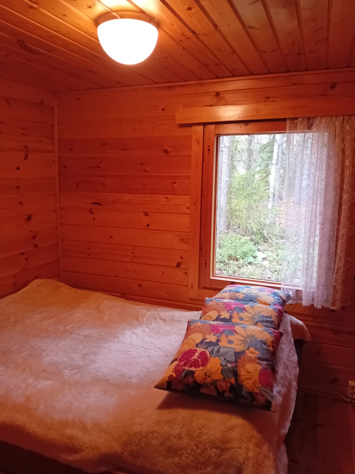 U prirodnom miru možete se opustiti, uživati u jutarnjem suncu, saunati se, kupati, veslati, boraviti na otvorenom, pešačiti, posmatrati prirodu ili raditi na daljinu tokom cele godine. U vikendici se nalaze 2 spavaće sobe, svetla kuhinja-dnevni boravak, potkrovlje za spavanje, unutrašnji toalet + tuš i kamin. Oprema: frižider, električni šporet, mikrotalasna pećnica, aparat za kafu i čajnik, posuđe, TV. Sauna na plaži ima prozore sa pogledom, peć na drva i prostoriju za saunu. Na terasi se nalazi roštilj na plin i sto sa stolicama. Iskopana plaža, pristanište, stepenice za kupanje i čamac za veslanje. Dođite u vikendicu usred prirode!