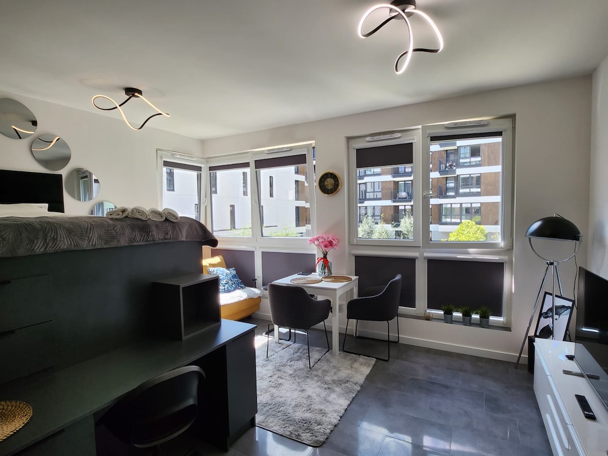 Welcome to our premium studio apartment. Fully equipped in a well commuted (5min to the subway) and very safe district. It’s so close to the park ideal for runners. The bathroom holds a big rain shower. The kitchen has a dishwasher, Nespresso coffee maker, microwave. USB sockets for phone charging. Washing machine. Enjoy fast, stable WIFI & workplace for home office. We have SELF CHECK-IN. Paid parking upon availability (RESERVATION REQUIRED). CLEANED, SANITIZED & OZONIZED after every guest.
