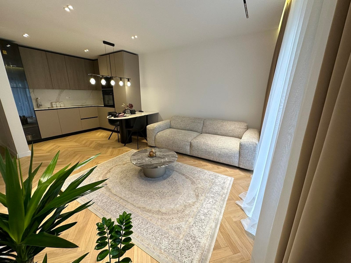 Smješten u samom srcu Prištine, direktno na glavnom gradskom trgu, ovaj stan se nalazi u potpuno pješačkoj zoni bez saobraćaja. Kafići, restorani, knjižare i kulturni sadržaji udaljeni su samo nekoliko koraka. Kao što se i očekuje za tako centralnu i živopisnu lokaciju, okruženje je živopisno, posebno tokom dana i večeri. Stan ima pametno dizajniranu kuhinju koja se može pretvoriti u dnevni boravak, sa dubokim, bogatim tonovima koji stvaraju toplu urbanu atmosferu.