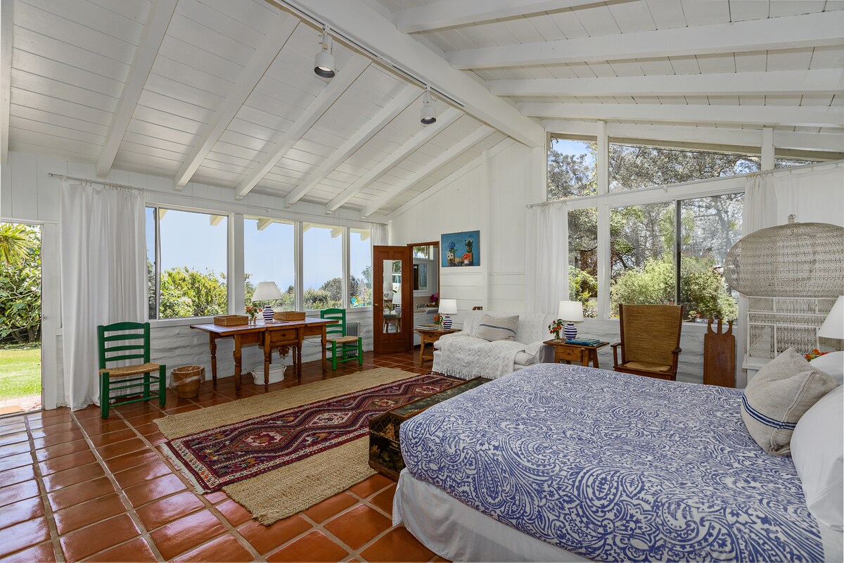Vaša sopstvena oaza usred 400 hektara NA potoku San Antonio, okružena brdima i prirodom. Uživajte u privatnom ulazu u udobne prostorije sa svim sadržajima i privatnom terasom sa pogledom na jedan od najlepših pogleda na Ojai. I sve je to samo pet minuta od centra grada! Dom mnogim pticama i životinjama; žabe sa crvenim nogama mogu da vas uspavaju. Dođite da se opustite i opustite!