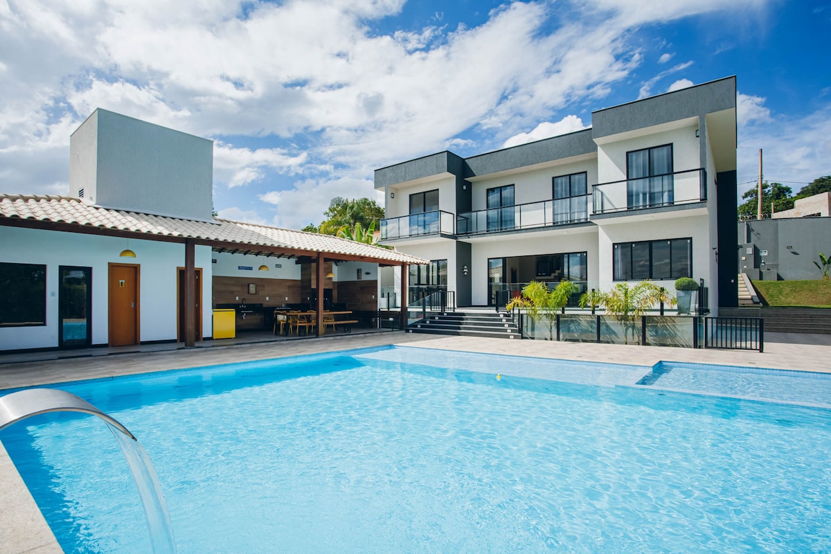 1 km od centra grada Pedra Leopolda, 15 minuta od administrativnog grada i aerodroma Confins. Kuća sa prostorom za odmor, garažom za tri ili više automobila. Salas, balkon, tri apartmana, oba sa mini barom i TV-om, jedan sa ormarom i hidromasažom. Do 10 kreveta za jednu osobu ili 3 para. Sportski teren, bazeni za djecu i odrasle. Gurmanski prostor, sa stolovima, klupom, šporetom na gas i drva, roštiljem, rezervoarima, frižiderom. Zvanična bilijar sala, sauna i tri kupatila.