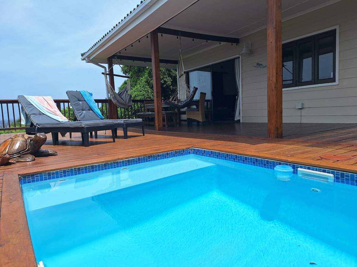 Naša seoska kuća na plaži nalazi se na vrhu grebena Frederico's Bay, okružena autohtonim drvećem, pticama i leptirima i tirkiznim morem. Ovdje možete vidjeti kitove kako migriraju i delfine kako surfuju. Spavaće sobe – 1 spavaća soba sa francuskim krevetom, 1 dječiji mezanin sa krevetom na sprat + krevet za jednu osobu. Zajedničko kupatilo. Odvojena seoska kuća sa spavaćom sobom sa kupatilom, bračnim krevetom (širine 180–220 cm). Opremljena kuhinja, dnevni boravak i trpezarija. Kupatilo sa tušem i spoljašnji tuš. Terasa sa 3 strane kuće sa prostorom za sjedenje i ručavanje + veliki prostor za roštilj sa prostorom za sjedenje