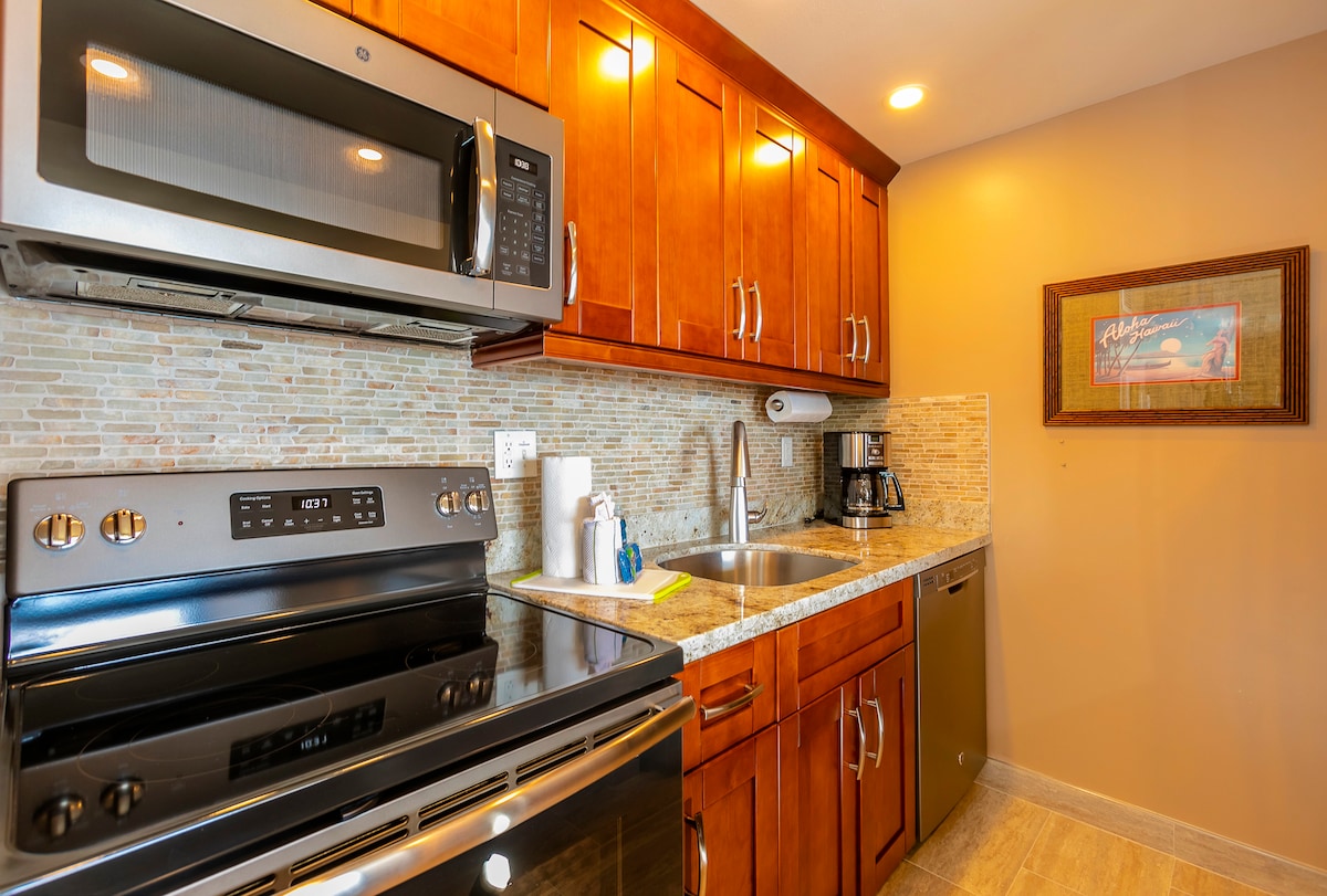 Nevjerovatan pogled na okean i zalasci sunca koji oduzimaju dah u našem nadograđenom jednosobnom, jednom kupatilu, klimatizovanom stanu. Sugar Beach Resort je samo nekoliko koraka udaljen od bele peščane plaže od 5 milja. Naš pristup plaži je odličan za plivanje, ronjenje, jedrenje na dasci, jedrenje na dasci, vožnju kajakom ili samo za opuštanje. Centralna lokacija za sve što Maui ima da ponudi. Naša jedinica ima 2 kreveta, sa bračnim krevetom Cal sa luksuznom posteljinom i dušekom. Potpuno opremljena kuhinja sa posuđem, priborom za jelo itd.