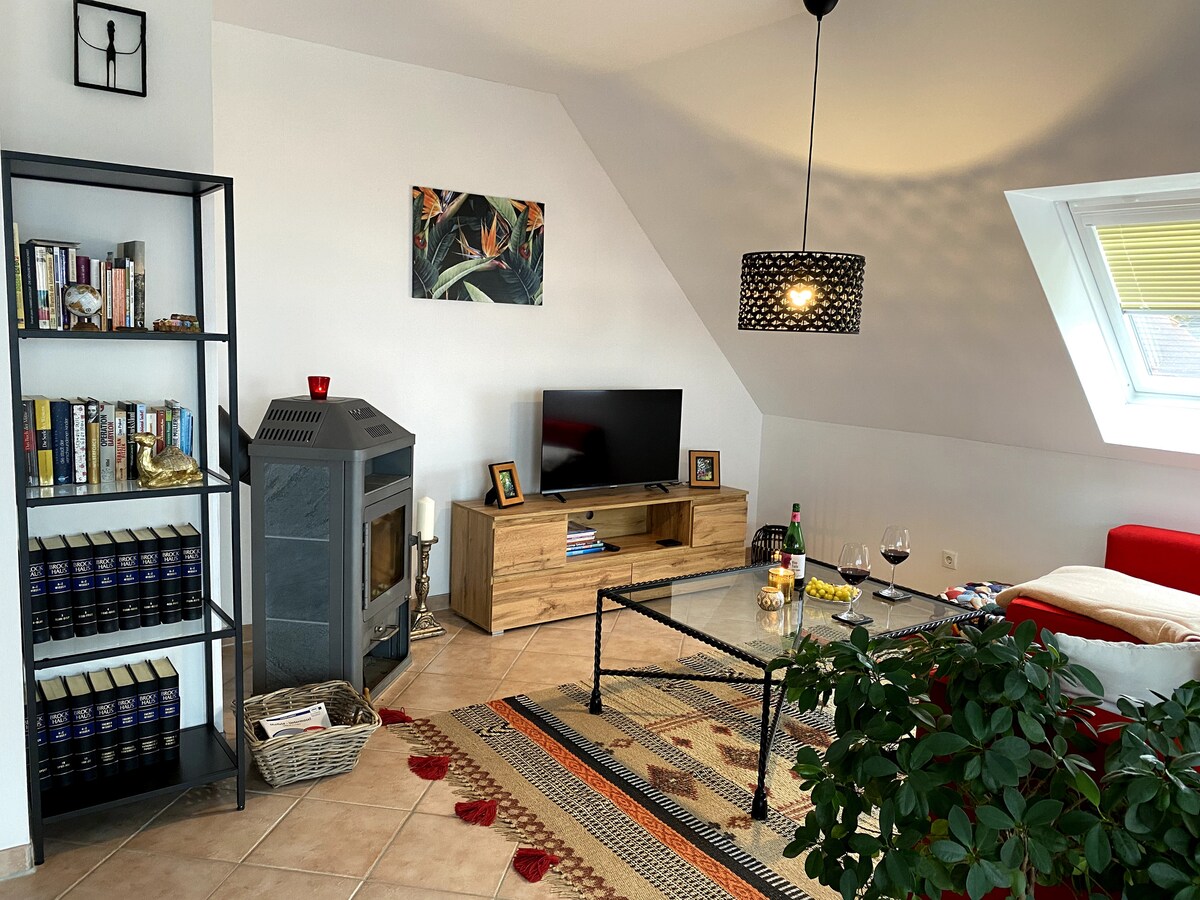 Posjetite nas na ivici Westerwalda (park prirode Rhine/Westerwald) u Sayntalu i doživite šarmantni stan veličine 75 kvadratnih metara. Svetli stan koji je restauriran sa mnogo prirodnih materijala i ljubavi nudi visok standard. Stan zrači puno udobnosti kroz sitnice i detalja. Mesto gde možete da završite ! Već se radujemo zanimljivim gostima sa svih strana sveta.