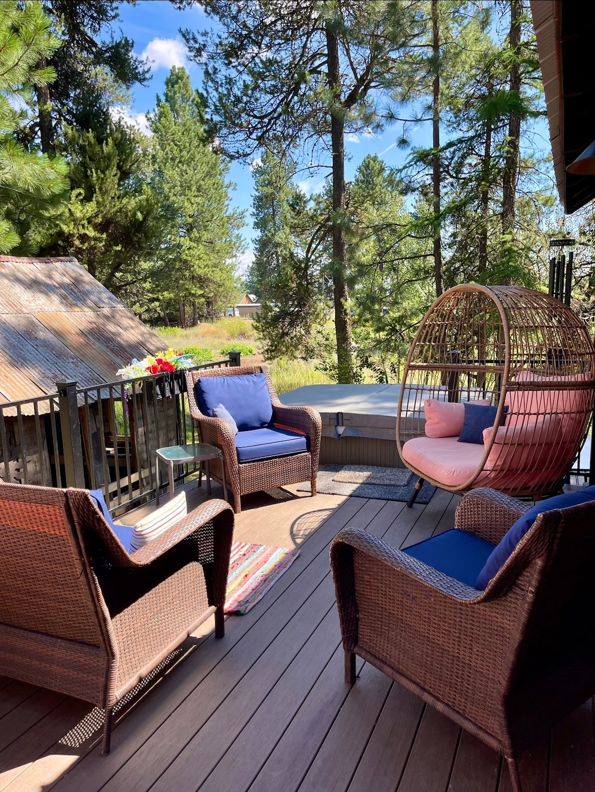 Keep it simple at this peaceful and centrally-located modern studio apartment. Located a mile from downtown McCall and Payette Lake. It comes complete with a full kitchen, queen bed, private hot tub, sofa bed, full bathroom, and amazing views of ponderosa pines out the windows. This studio is a wonderfully tranquil location allowing you to enjoy all the beauty and adventure in McCall; hiking, biking, fishing, boating, beaches, parks, skiing, snowshoeing, nordic skiing and so much more.