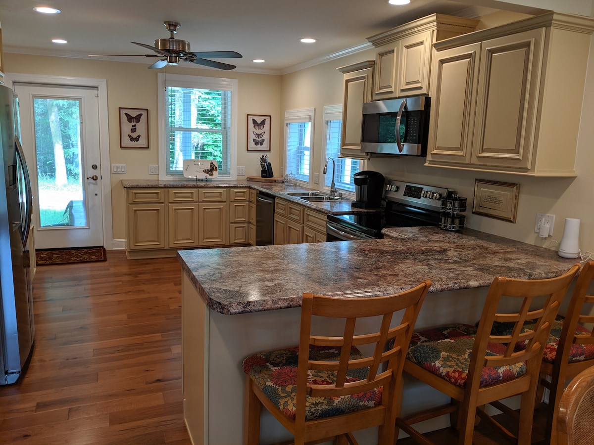 Jedan od najboljih pogleda na jezero smešten u Nacionalnoj šumi Danijel Bun. Prostrana kuća od 4 BR sa dodatnim prostorom za spavanje u podrumu sa dušekom od memorijske pjene. Velika hidromasažna kada ispod natkrivenog trijema i nalazi se u privatnoj ograđenoj zajednici sa više bazena, teniskim terenima, pešačkim/ATV stazama - sve u krugu od 1 milje od rampe za brodove. Novi nameštaj i televizori u svakoj spavaćoj sobi, podrumska igraonica sa barom/stolom za poker, đakuzi u masteru. Odličan pogled na jezero iz svake sobe! Odličan Wi-Fi za rad.
