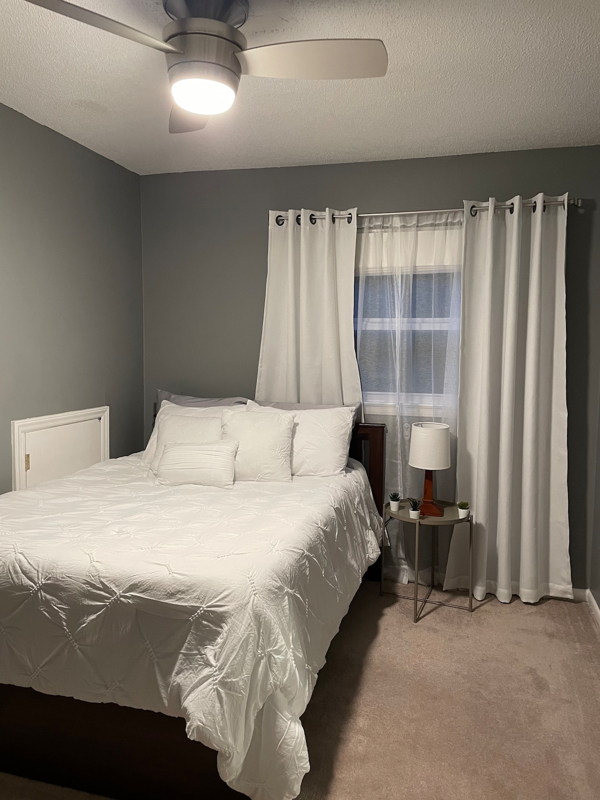 Welcome to our cozy one bedroom suite located on first floor and have access to the fenced backyard ,one bedroom and one bathroom , good for 2 guests with queen bed very comfortable that you experienced a good night sleep, bedding get ironed after each laundry and they are odor free, you’ll find a welcoming basket on table and something to cook or just a popcorn for movie, don’t forget share your good ideas in the notebook 😊