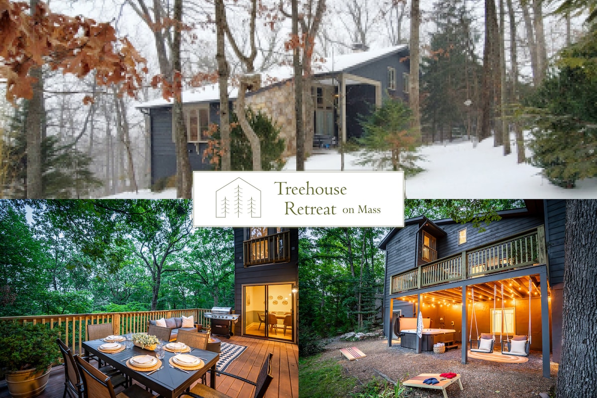 Šestougaoni dom na krošnjama drveta u odmaralištu Massanutten. Opustite se pored unutrašnjeg plinskog kamina, uživajte u privatnoj hidromasažnoj kadi i zabavite se uz grupna karaoke takmičenja. Jedinstvena moderna koliba iz sredine prošlog vijeka koju vam donosi CampfireLodges. Zabava: televizori sa prikazom od 360°, TV u svakoj sobi, brzi Wi-Fi Kuhinja: kuhinja za kuvare pored velike sobe (držite grupu na okupu!) – bar sa kafom i roštilj ~5 minuta do skijanja, vodenih parkova, golfa, restorana i vinarija – a ipak mirno među borovima. Rezervišite odmah prije nego što datumi nestanu!