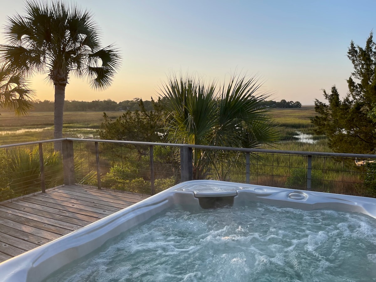 Ova kuća je mirna na osami i plimni potok. Gleda na ostrvo Sapelo i nalazi se u blizini ostrva Sent Simons, Džekil i Savana. Odlično za ljubitelje prirode sa jezerom sa svežom vodom od 2,5 hektara za egzotične ptice i divlje životinje, kao i u blizini izbeglica za divlje životinje Haris Neka. Imamo 2 dupla kajaka, kanu, 8 bicikala, jacuzzi i nebo za posmatranje zvezda. Dobro opremljena kuhinja izlazi u odličnu sobu sa spavaćim sobama na svakom spratu. Kućni ljubimci su dobrodošli i imaju mnogo parkinga.