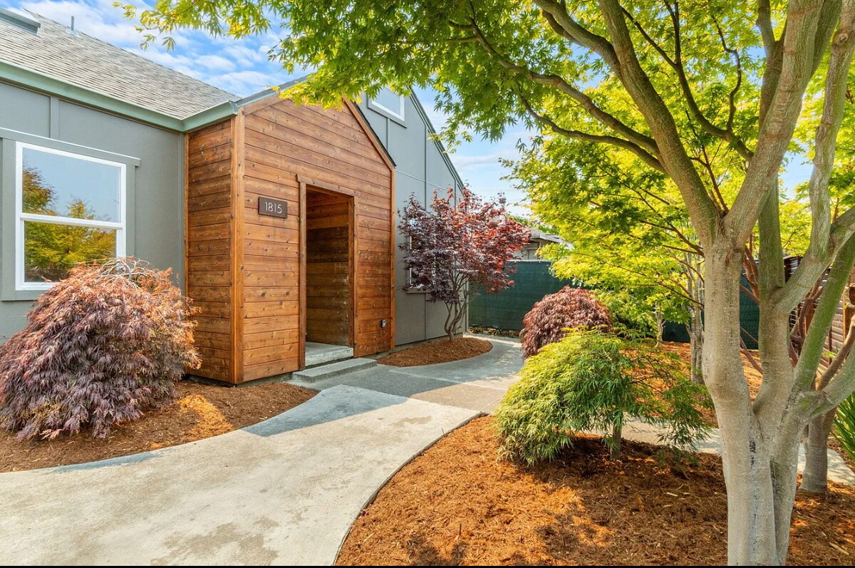 Odlična lokacija sa pogledom na šumu sekvoja. Naš bungalov je potpuno opremljen. Dođite kući sa nagradom na pijaci i iskoristite dobro opremljenu kuhinju ili roštilj na balkonu. Udobno se smestite u dnevnoj sobi pritiskom na dugme sa kaminom na gas i Smart TV-om. Čvrsto spavajte na bračnom ili bračnom krevetu. Ako imate još ljudi, mogu da vam obezbijedim dušek na naduvavanje. Prošetajte od vrata do Cal Poly Humboldta, Arcata Plaza i Shay Park. Predivna baza.